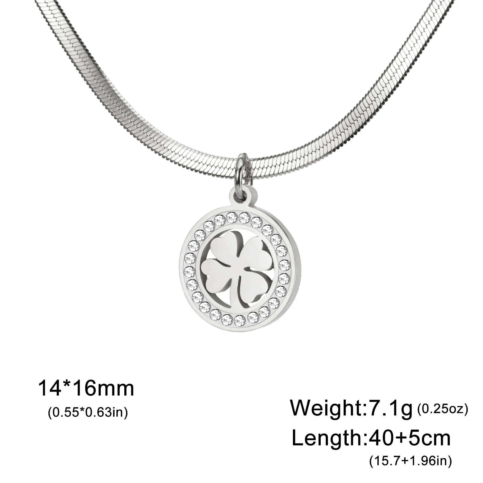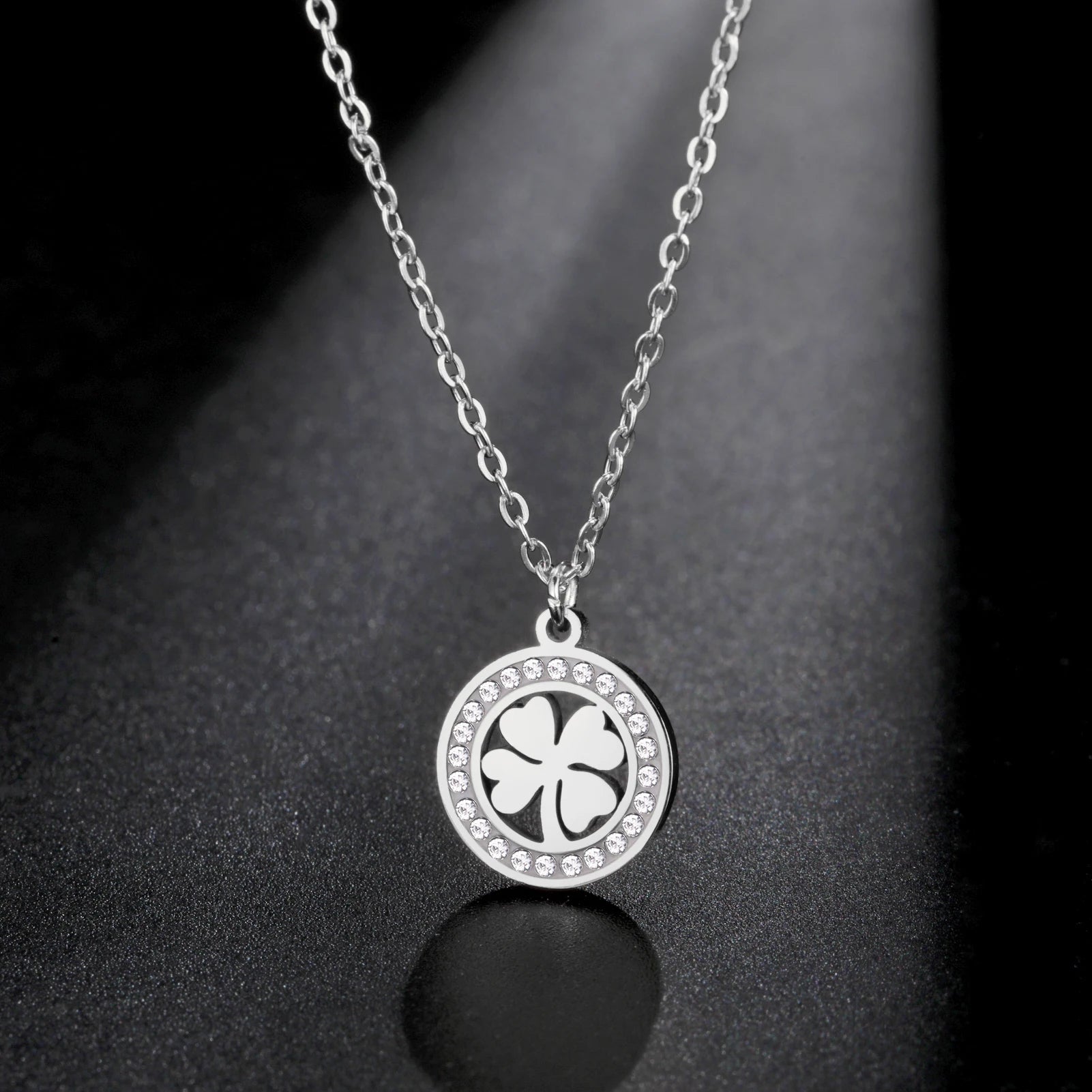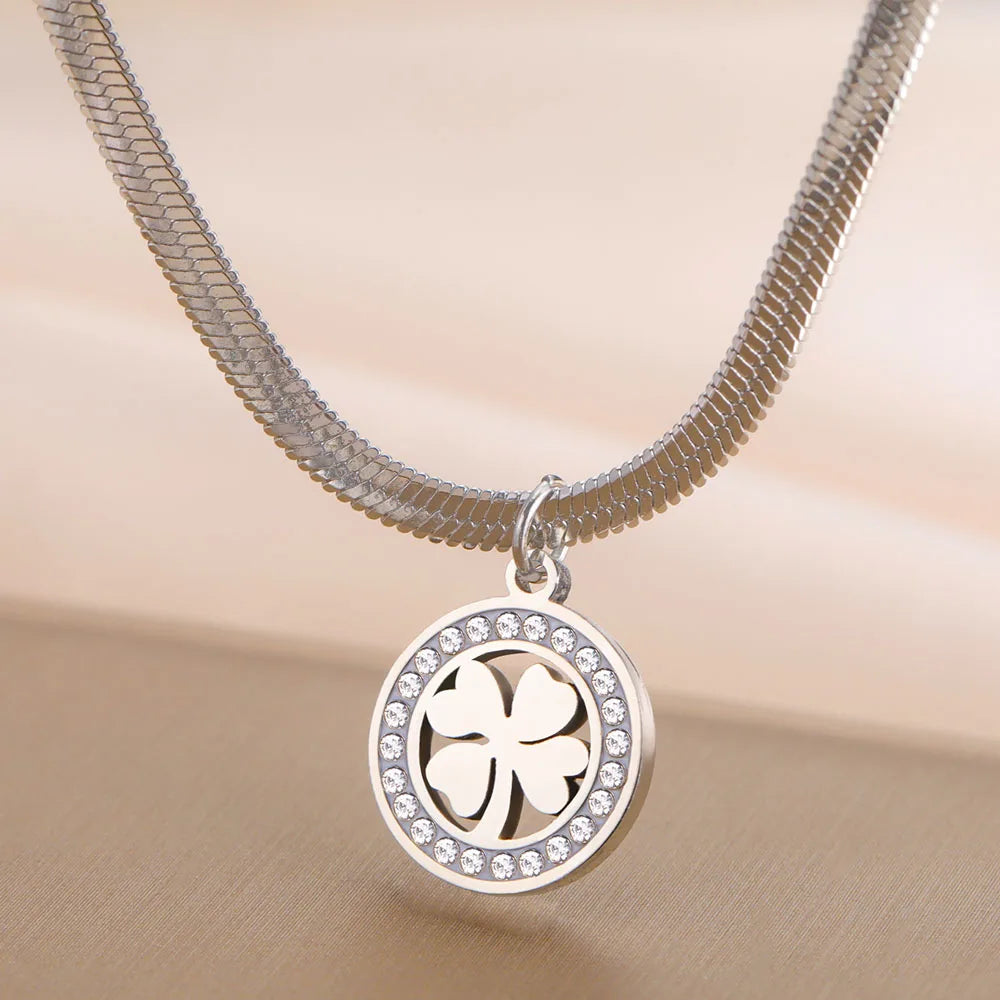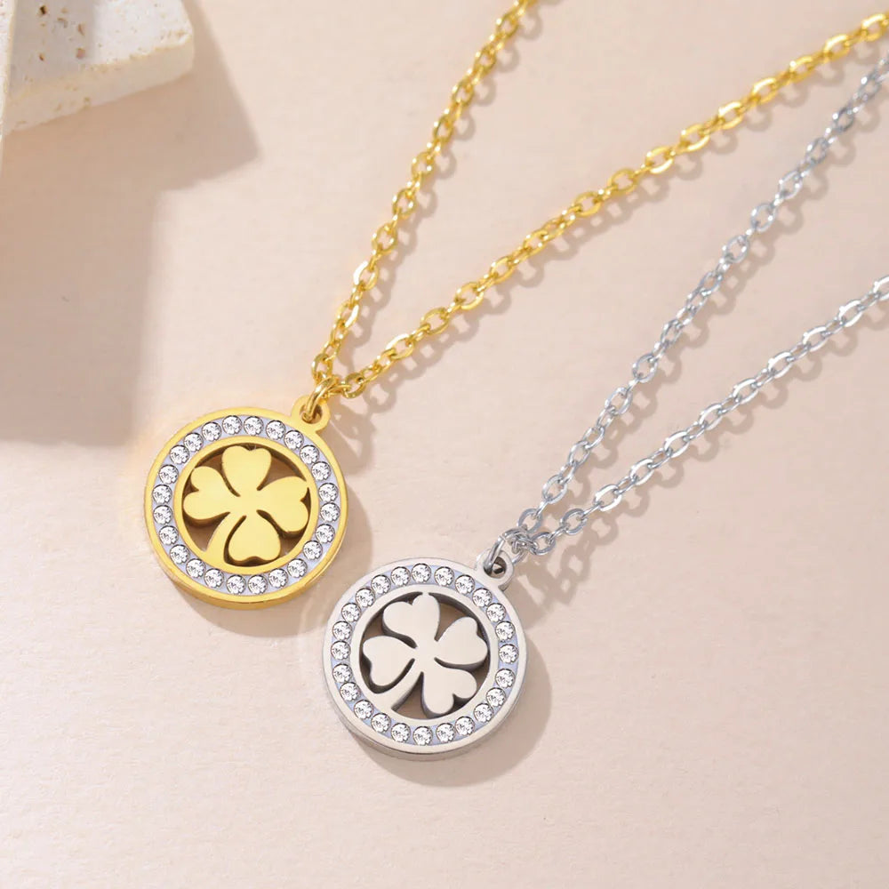 Fashion Clover Round Pendant Necklace Stainless Steel Elegant Zircon Charm Necklace for Women Jewelry Gift 2025 New