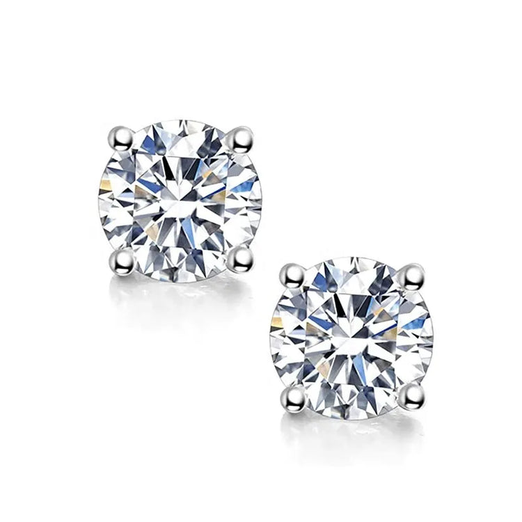 Brilliant Round Cut Moissanite Stud Earrings 18K White Gold Plated Moissanite Silver Earrings