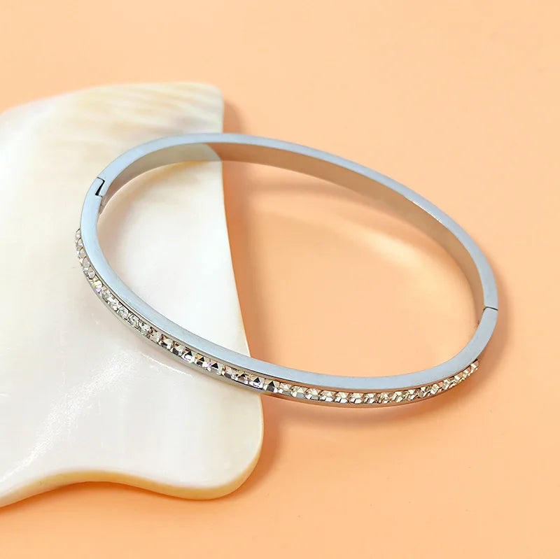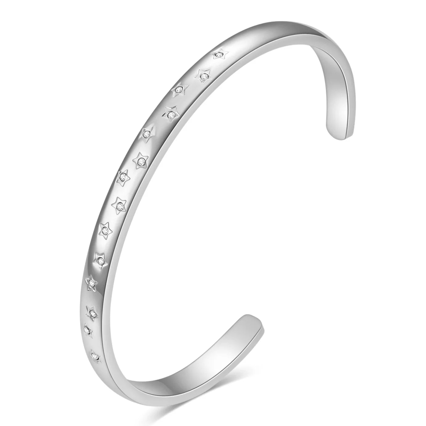 Add a touch of celestial charm to your jewelry collection with this trendy star-patterned bangle. Made from high-quality stainless steel and plated in a radiant gold color, this bangle is designed for women who love to shine. Its sleek design and star motif make it a perfect accessory for both casual and formal outfits, ensuring you stand out on any occasion.