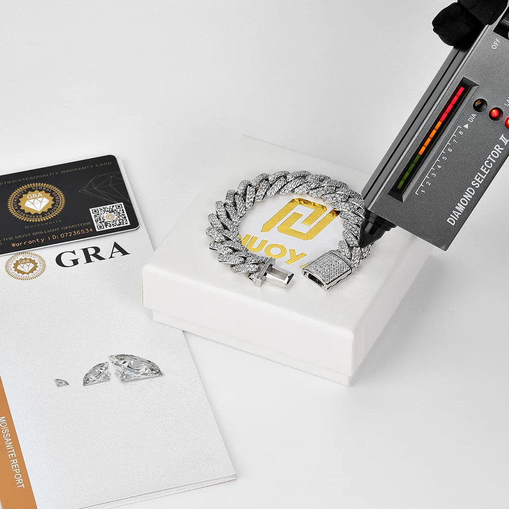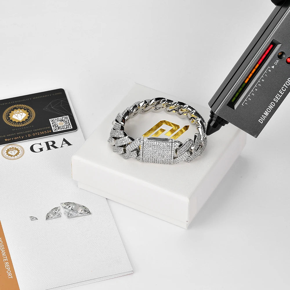 8/10/15/20mm Miami Hip Hop Jewelry Pass VVS Stone Shiny 925 Sterling Silver Bracelet Moissanite Cuban Link Chain For Men