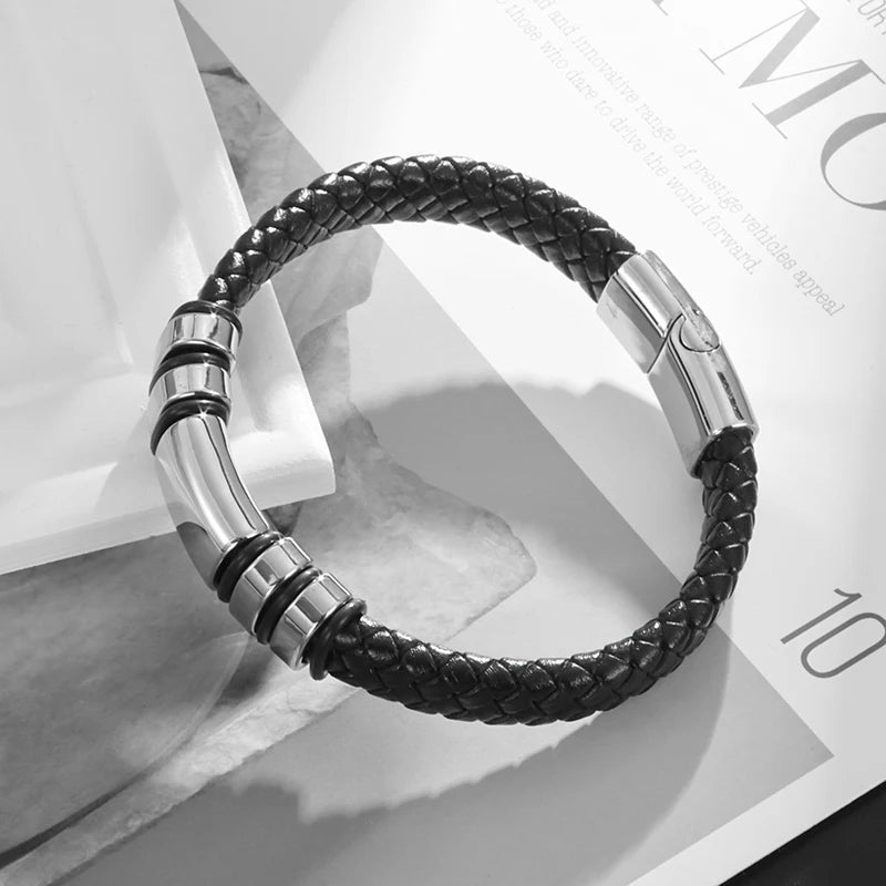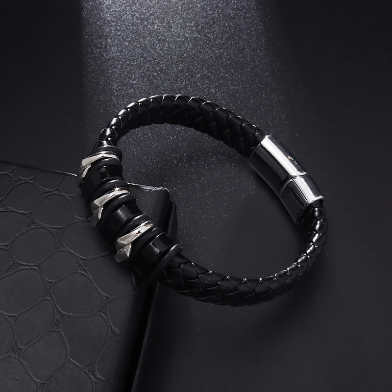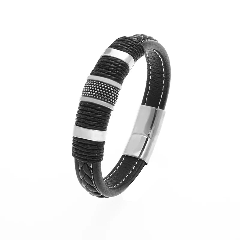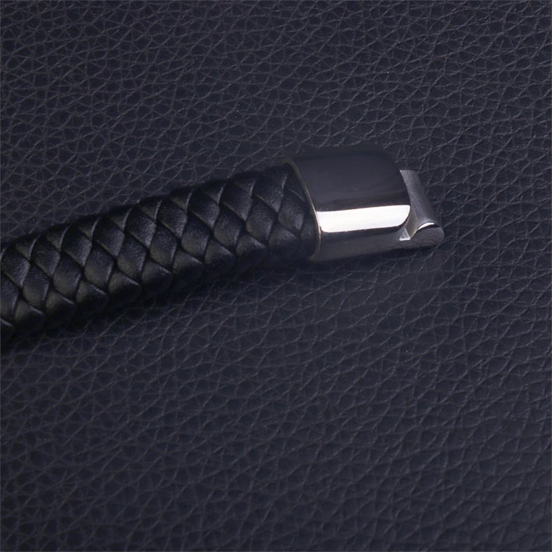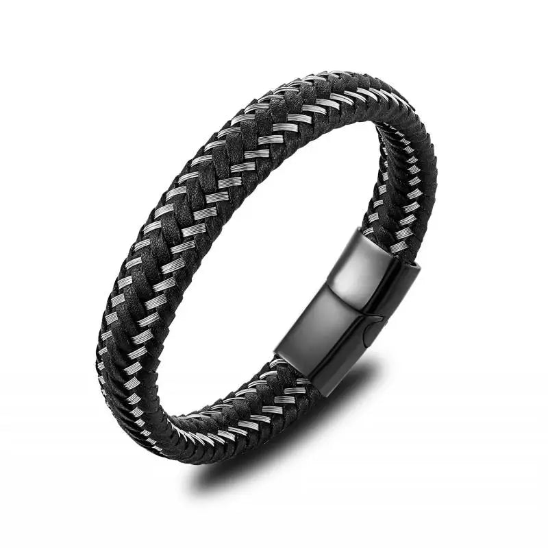Classic Black Leather Wrap Bracelet for Men Metal Magnetic Clasp Fashion Bangle Bracelet Male Birthday Gift