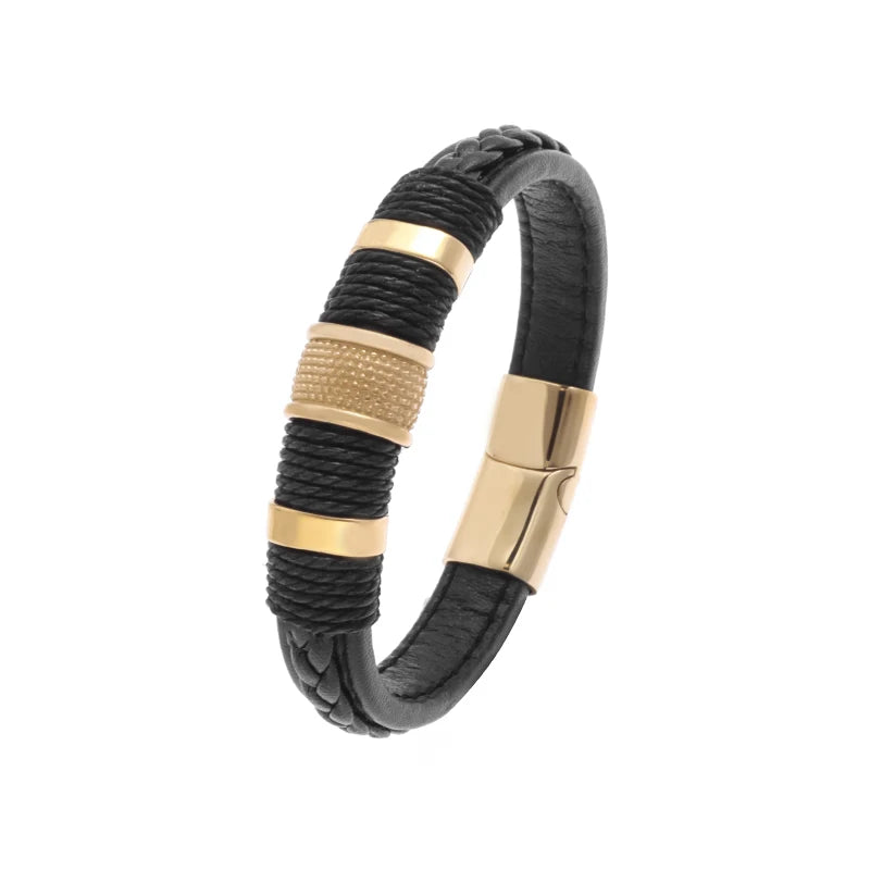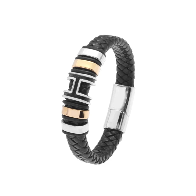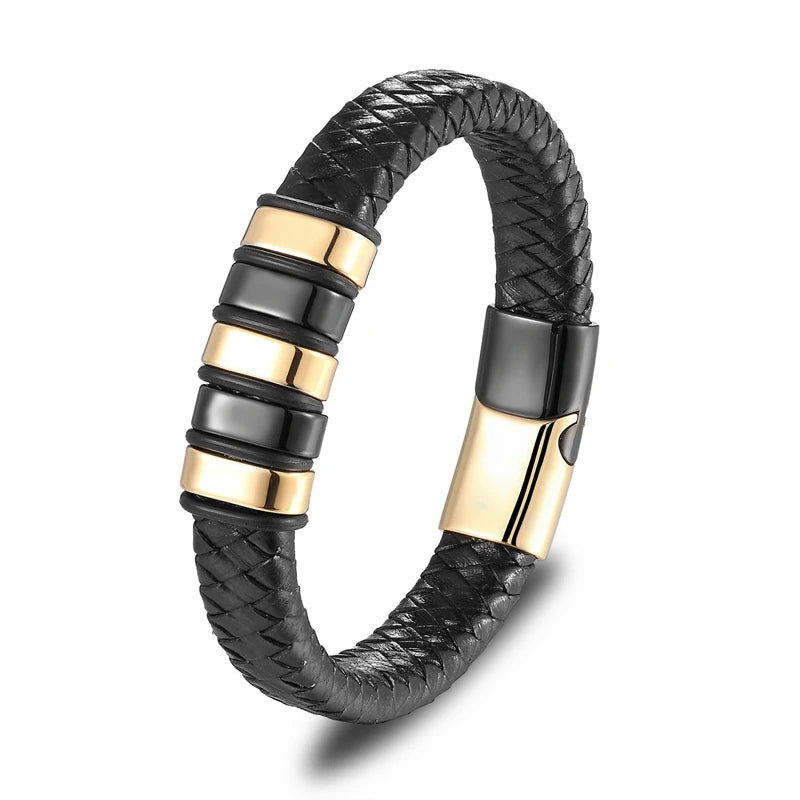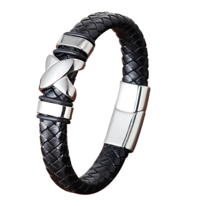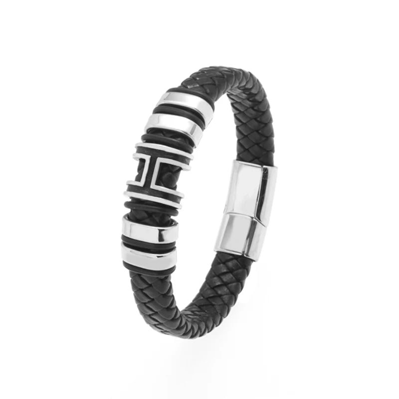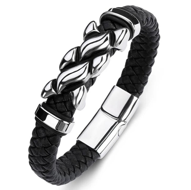 Classic Black Leather Wrap Bracelet for Men Metal Magnetic Clasp Fashion Bangle Bracelet Male Birthday Gift