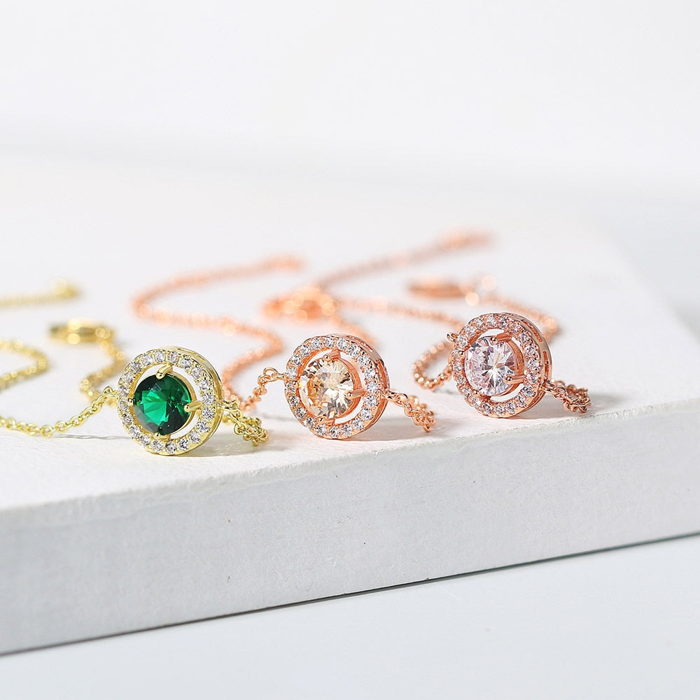 Round Micro Mosaic Cubic Zirconia Rose Gold Color Bracelet