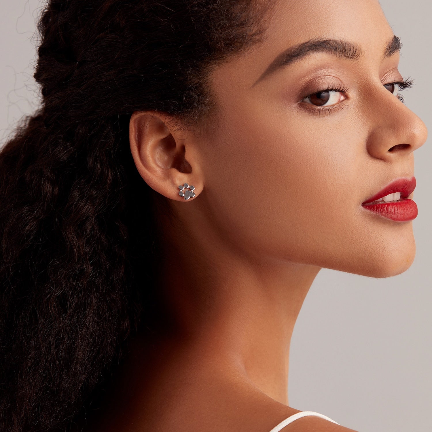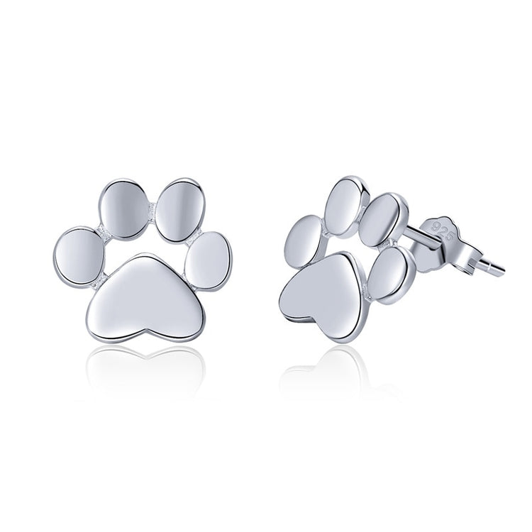 925 Sterling Silver Animal Paw Footprints Stud Earrings