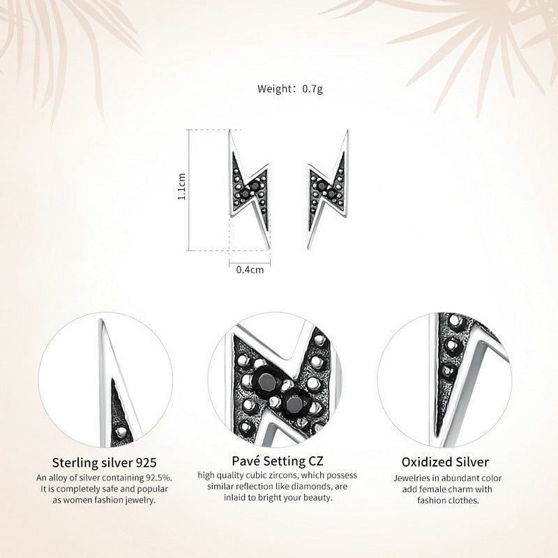 925 Sterling Silver Exquisite Lightning & Black CZ Stud Earrings