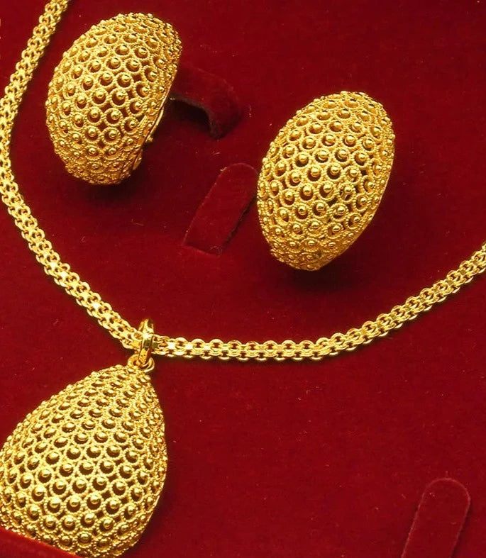 24K Gold-plated Two Piece Copper Jewelry Set India Dubai Jewelry Gold Warped Geometry Necklace Earrings