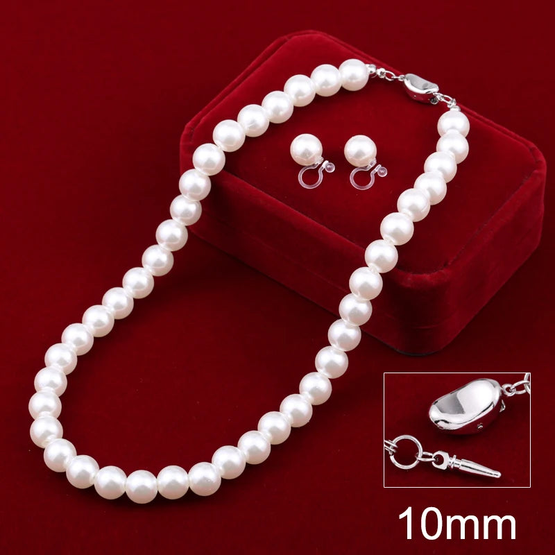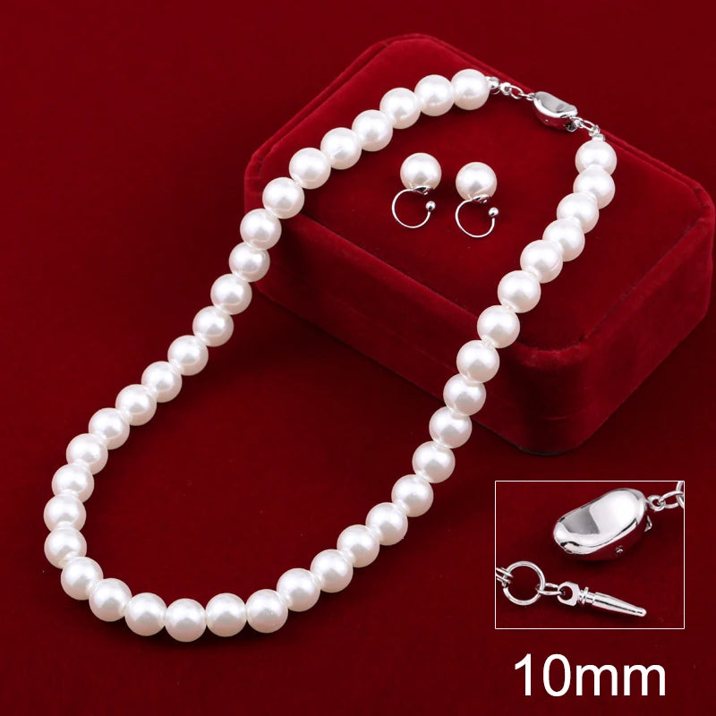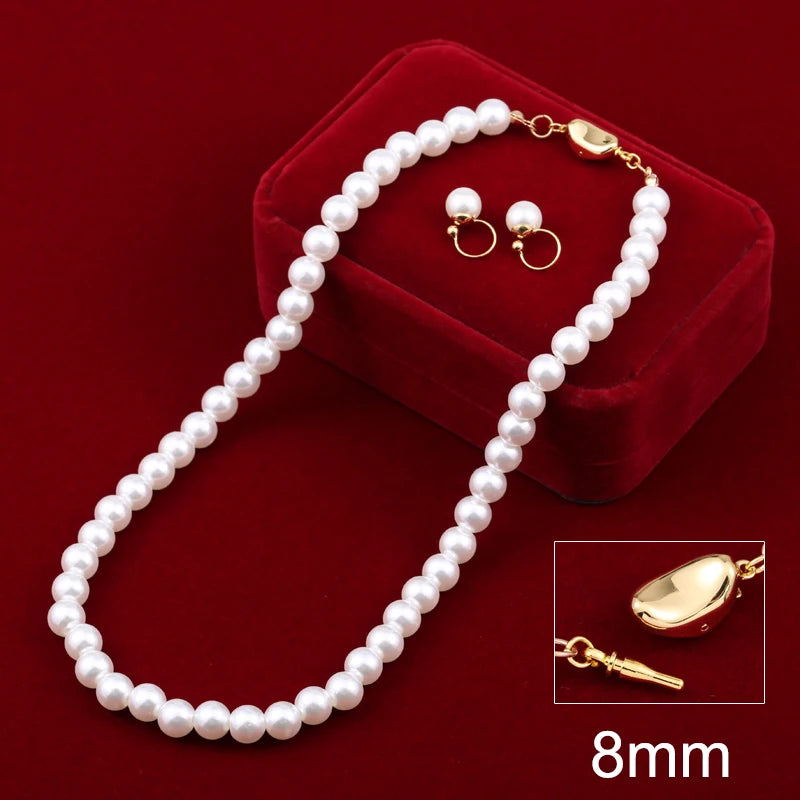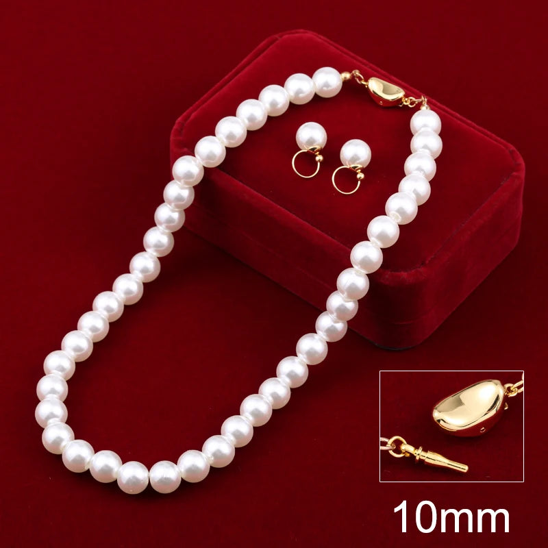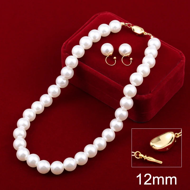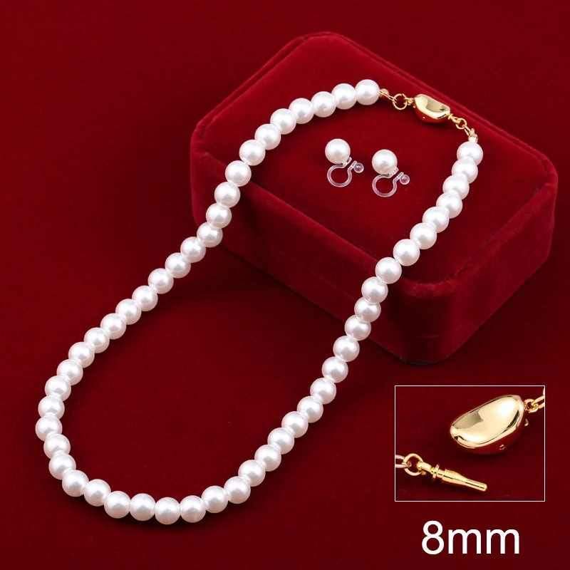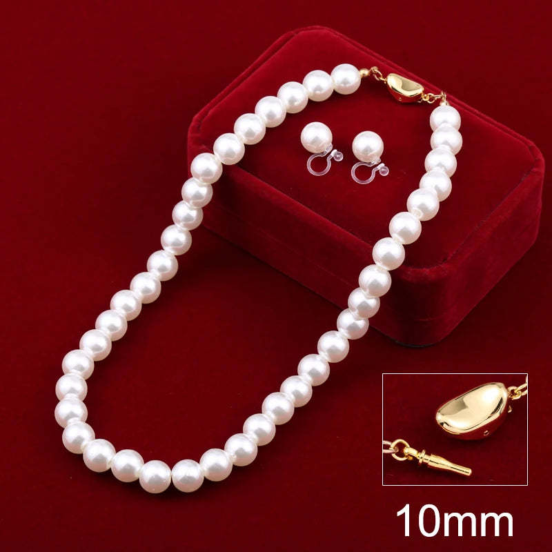 6/8/10/12mm 1 Set Of ABS Pearl Ear Clip French Pearl Necklace 42cm Clavicle Chain Jewelry Set 2023 New Earring Trend