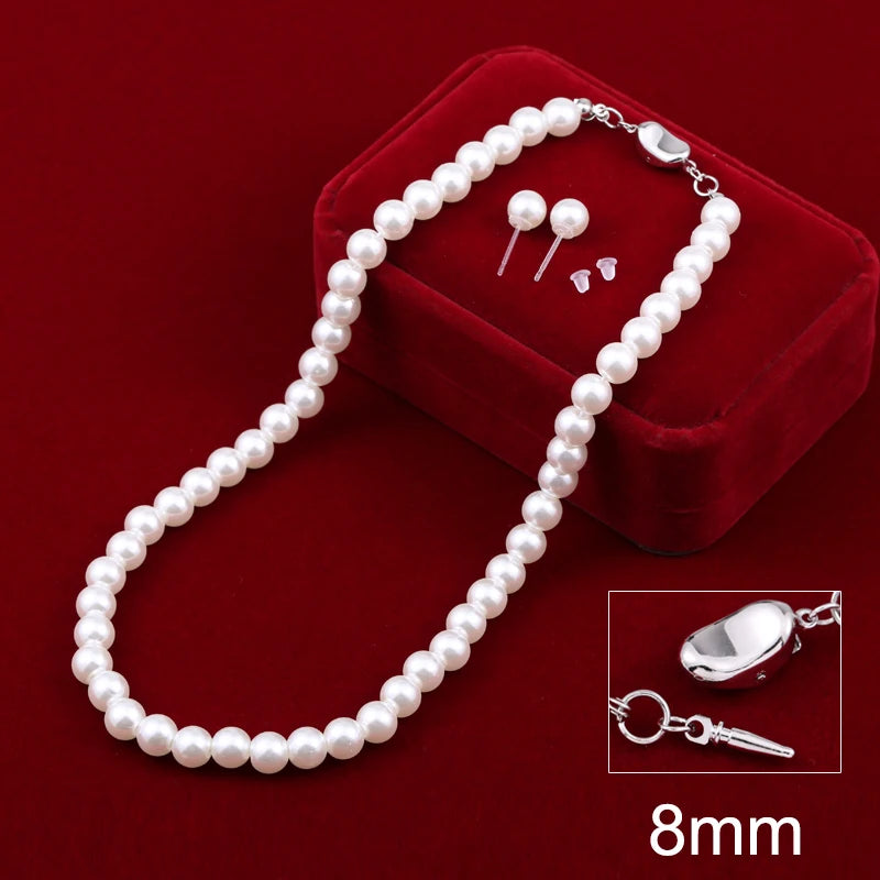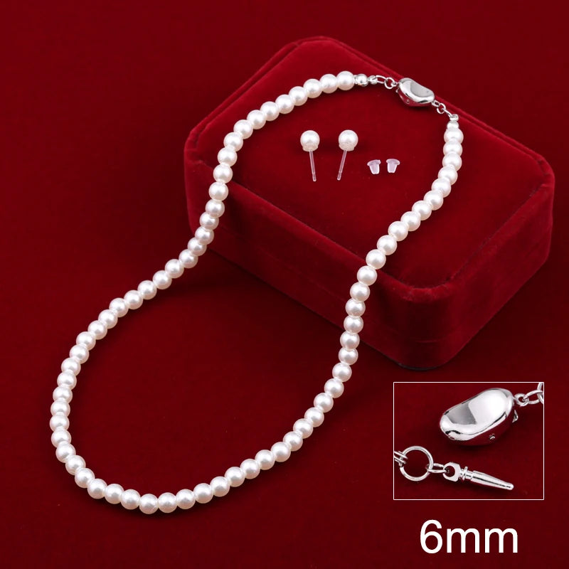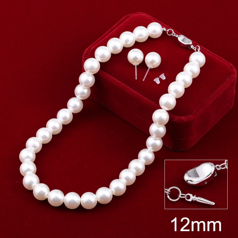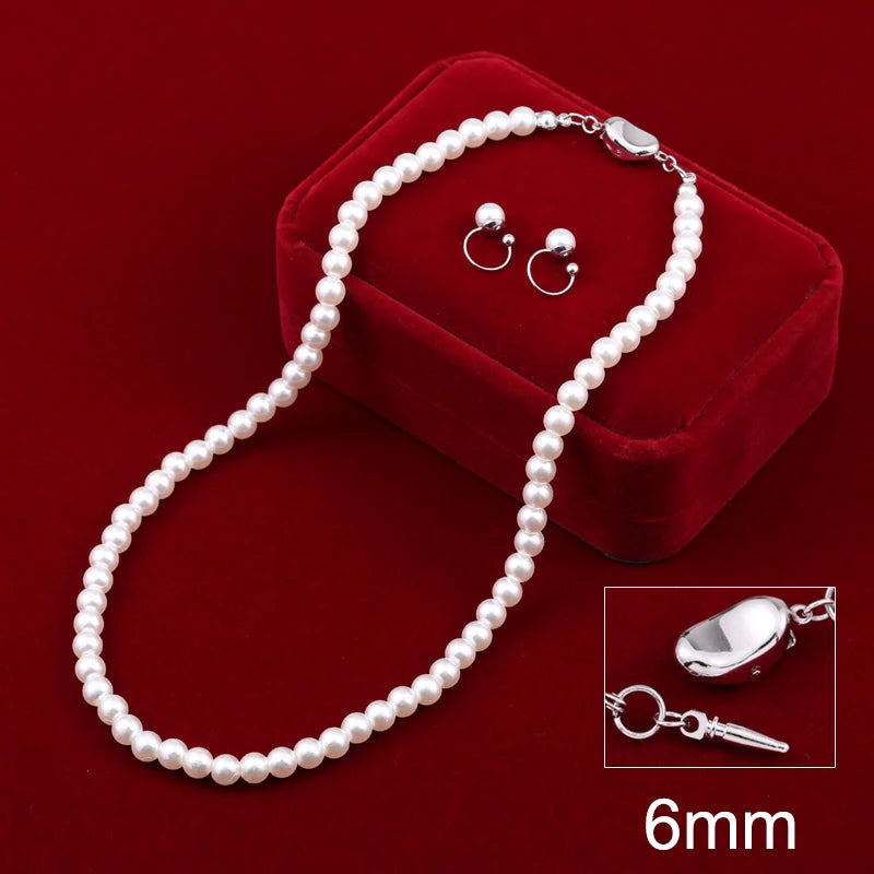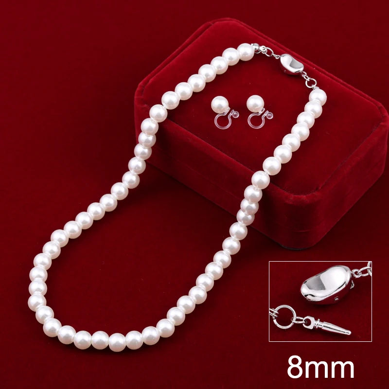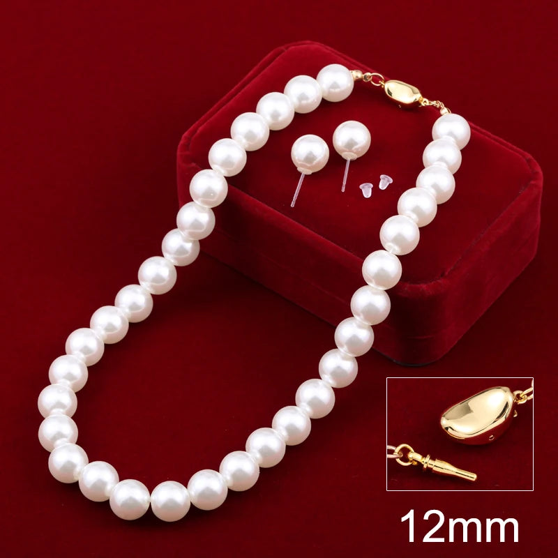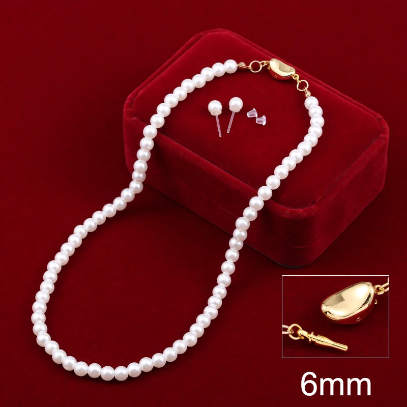 6/8/10/12mm 1 Set Of ABS Pearl Ear Clip French Pearl Necklace 42cm Clavicle Chain Jewelry Set 2023 New Earring Trend