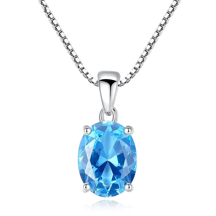 925 Sterling Silver Classic Blue Stone Necklace