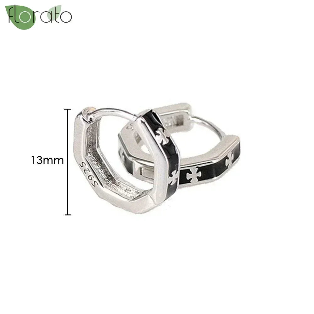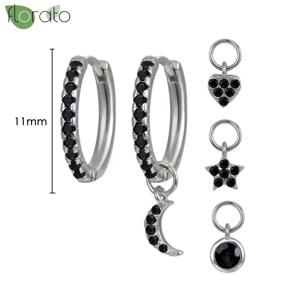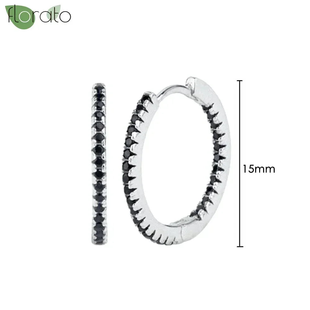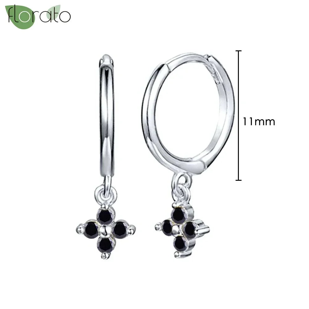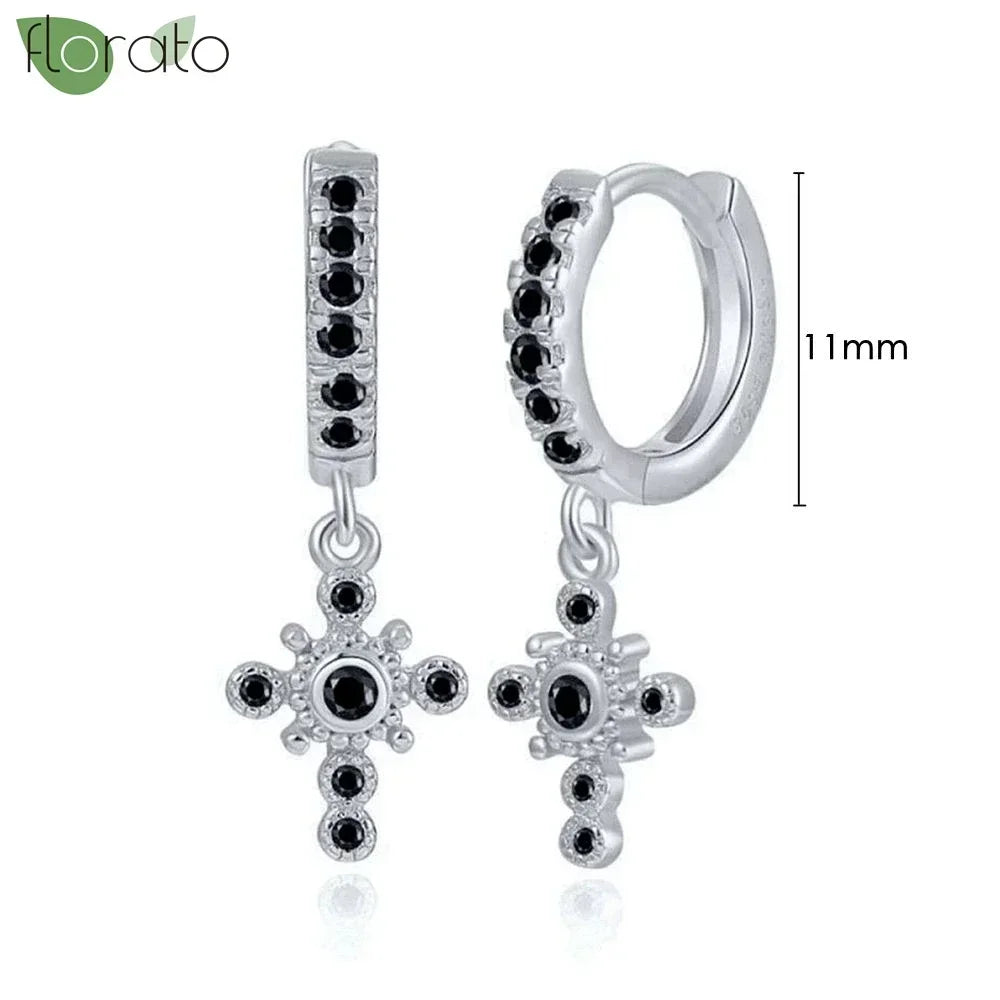925 Sterling Silver Needle Fashion Black Zircon Earrings New Round/Cross Pendant small Hoop Earrings for Women Luxury Jewelry