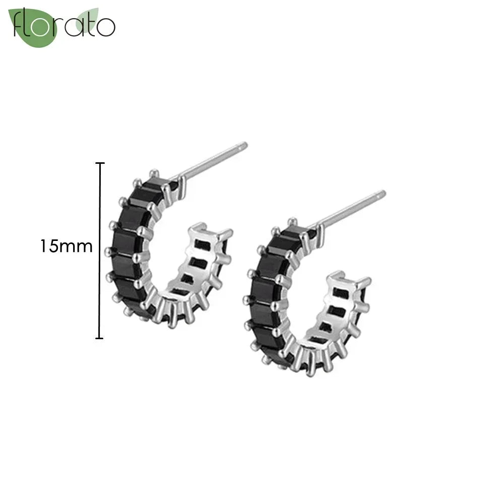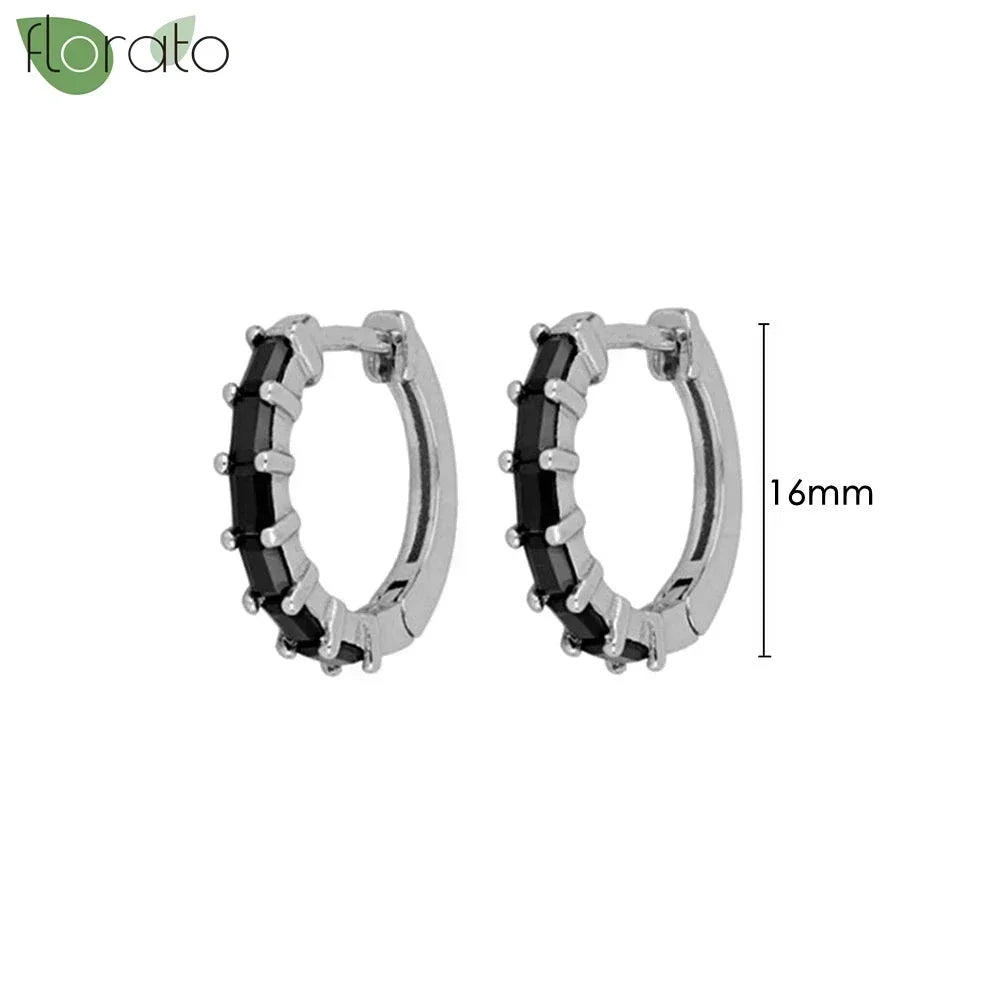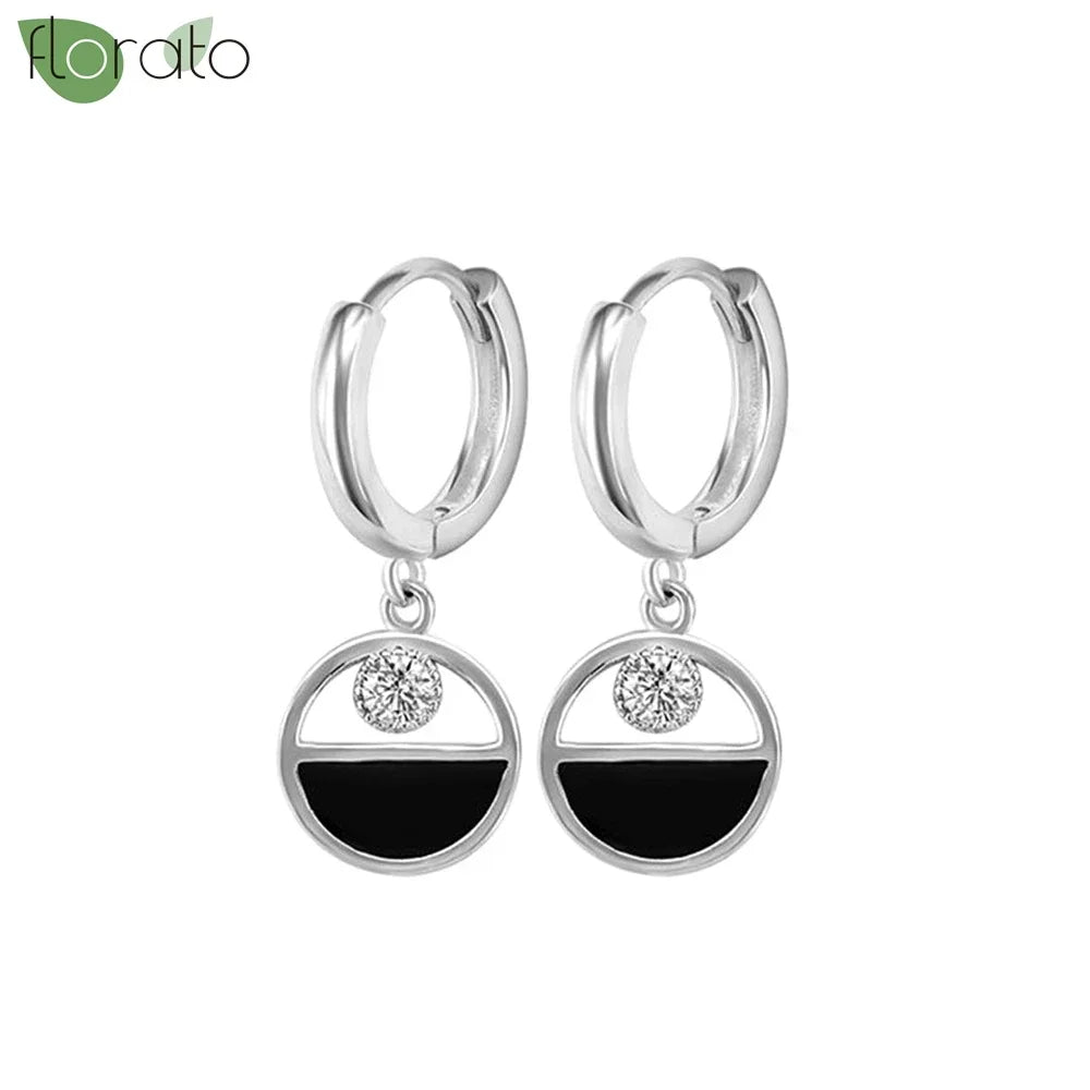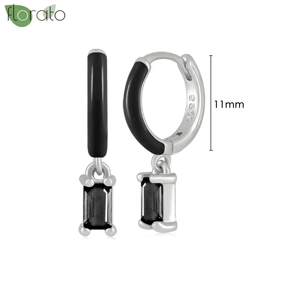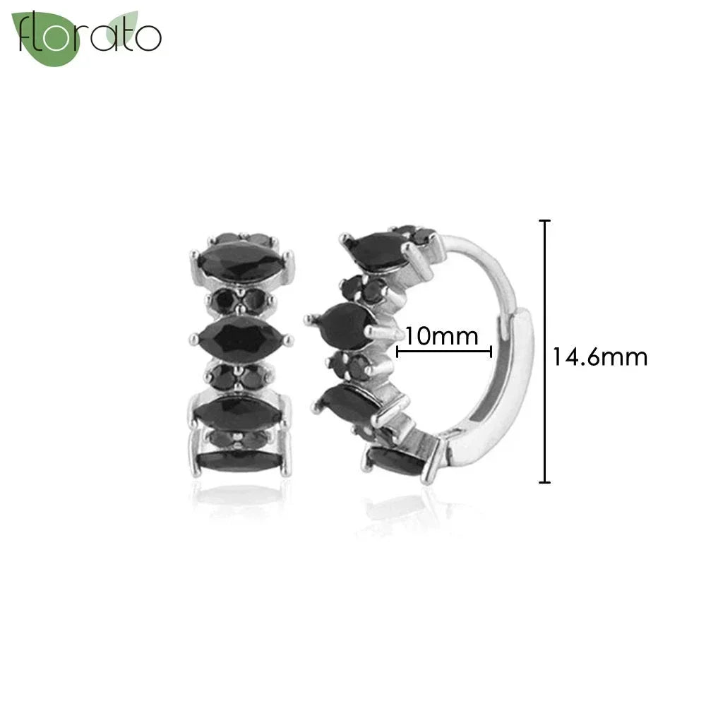 925 Sterling Silver Needle Fashion Black Zircon Earrings New Round/Cross Pendant small Hoop Earrings for Women Luxury Jewelry