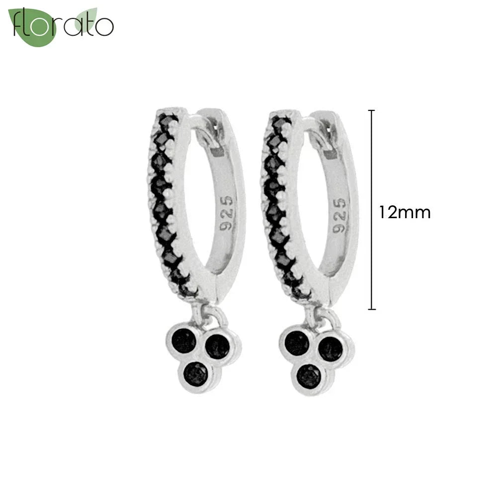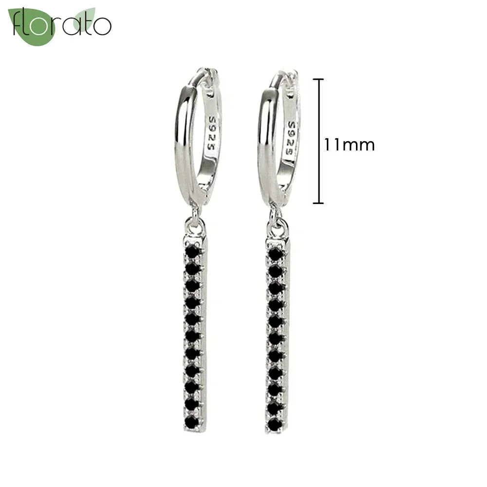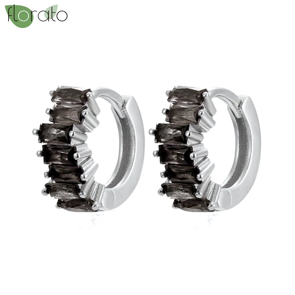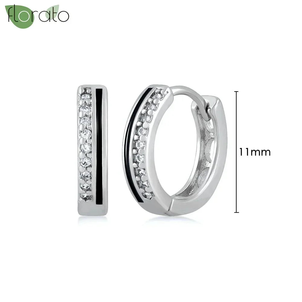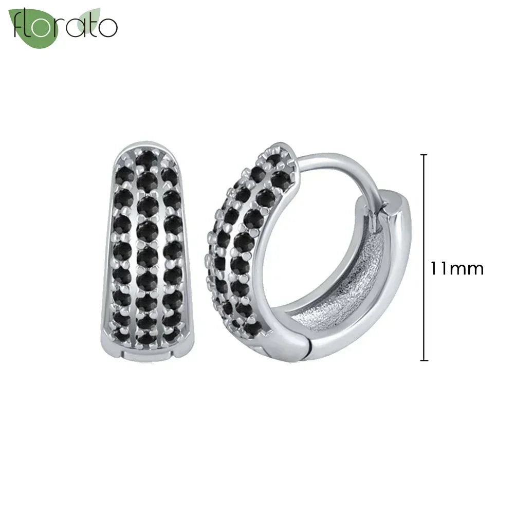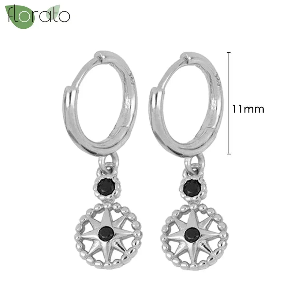 925 Sterling Silver Needle Fashion Black Zircon Earrings New Round/Cross Pendant small Hoop Earrings for Women Luxury Jewelry