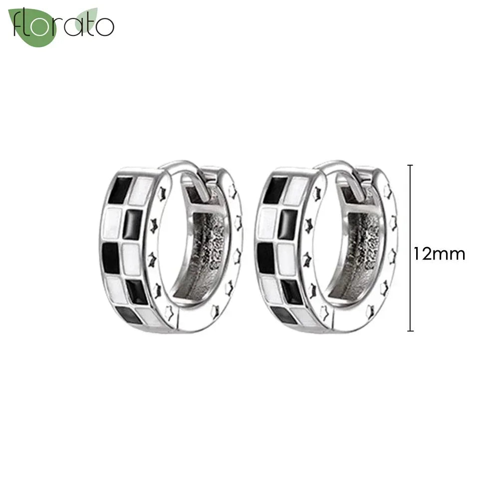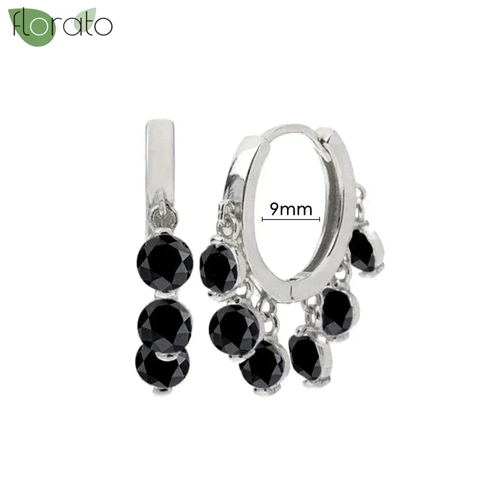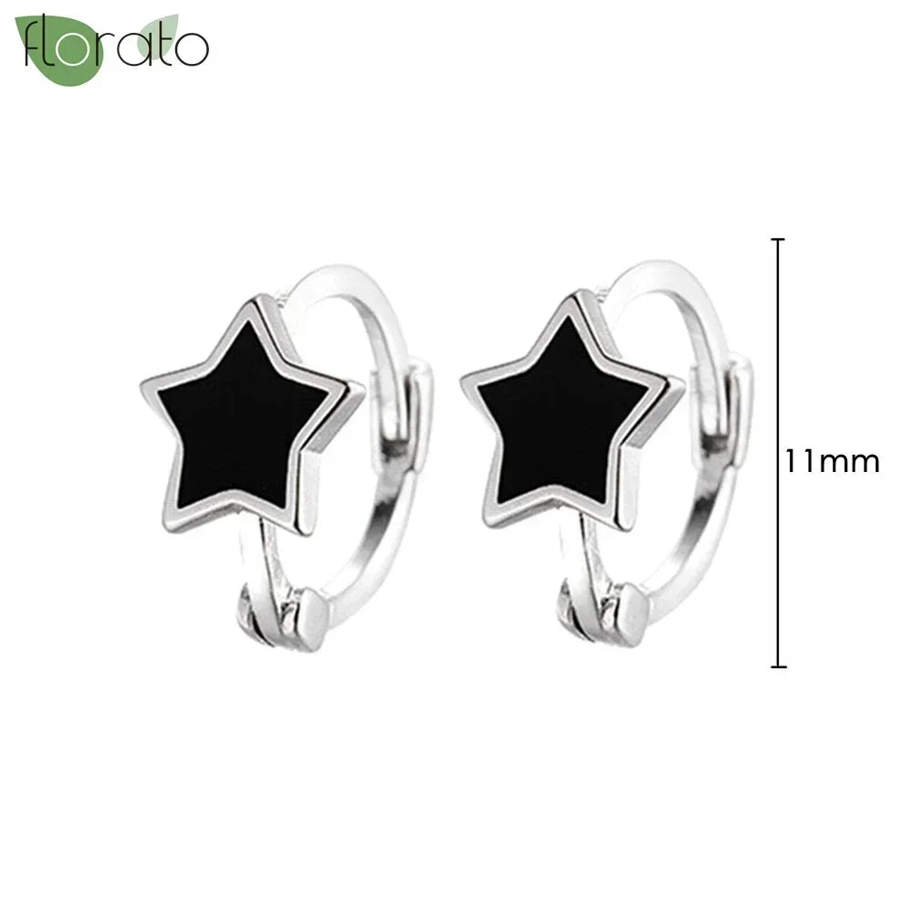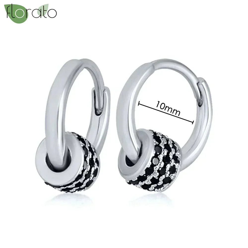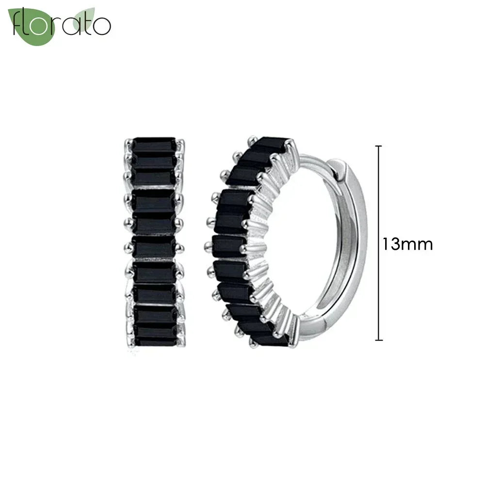 925 Sterling Silver Needle Fashion Black Zircon Earrings New Round/Cross Pendant small Hoop Earrings for Women Luxury Jewelry