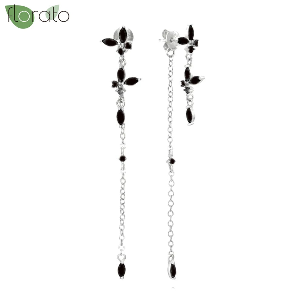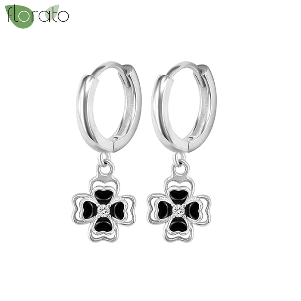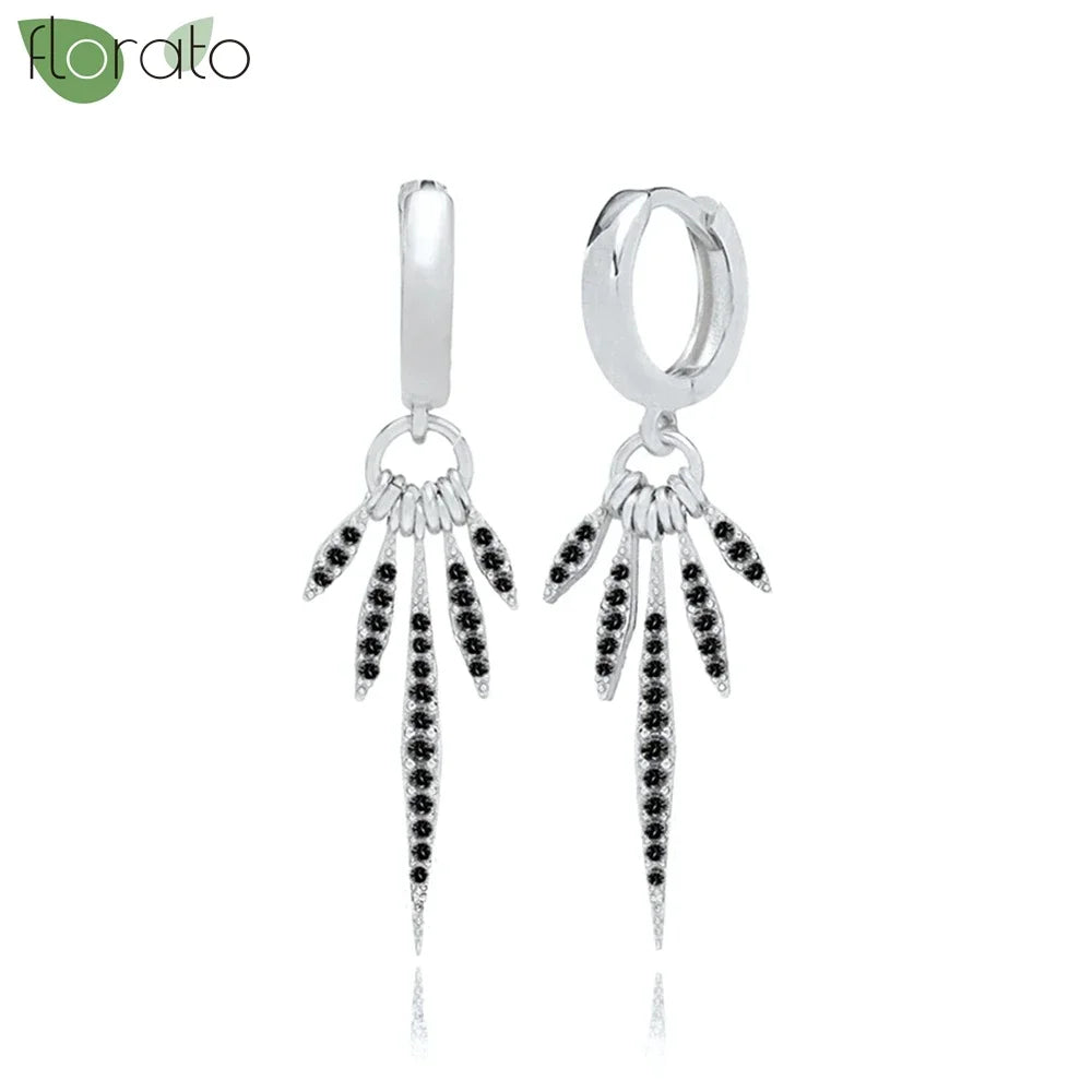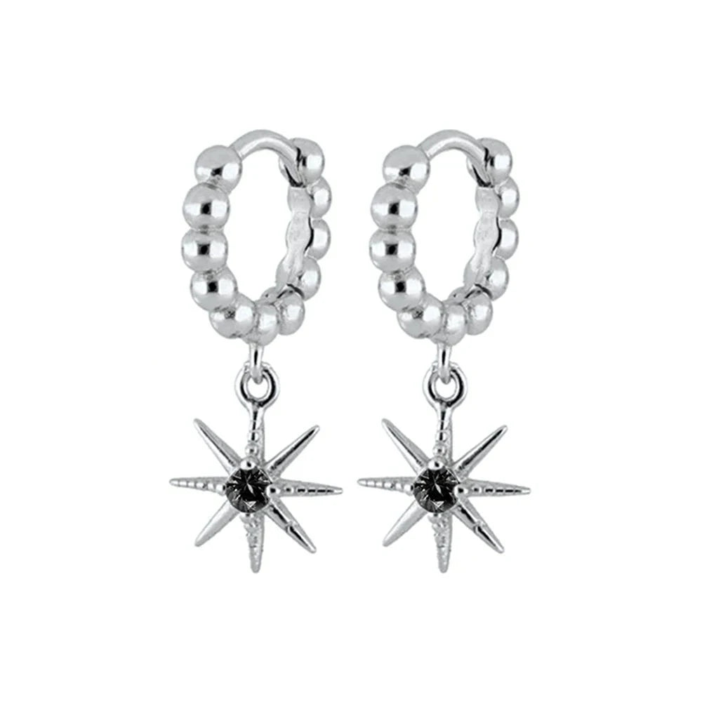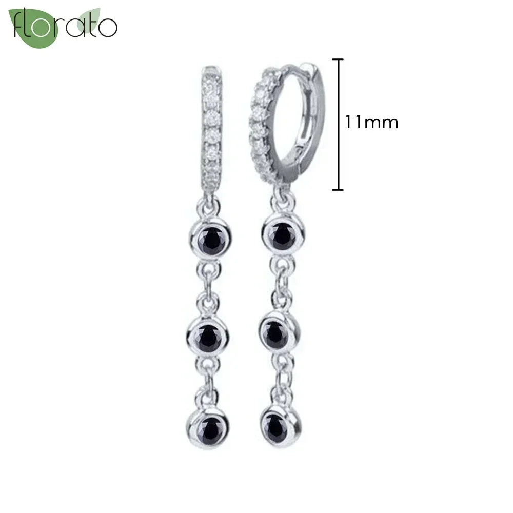 925 Sterling Silver Needle Fashion Black Zircon Earrings New Round/Cross Pendant small Hoop Earrings for Women Luxury Jewelry