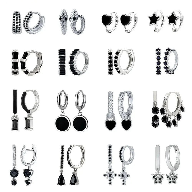Celebrate special moments with these exquisite heart-shaped hoop earrings, designed to add a touch of elegance and charm to any occasion. Whether it’s an anniversary, engagement, party, or birthday, these earrings are the perfect gift for your loved ones—be it a friend, mother, sister, or special someone. Crafted from high-quality 925 sterling silver and adorned with sparkling zircon stones, these earrings come in a variety of stylish shapes including heart, chain, snake, geometric, octagonal star, and water droplets. Available in silver, black, and a combination of silver and black, they offer a trendy and versatile accessory to complement any outfit.