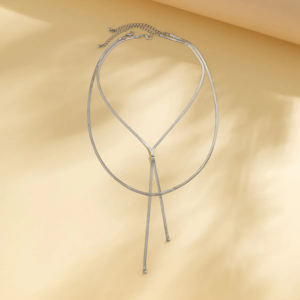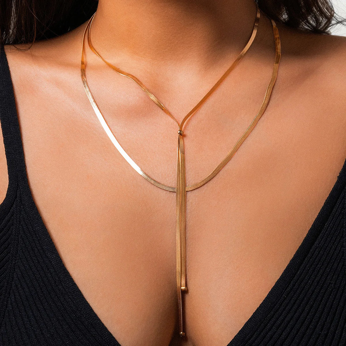 Adjustable Flat Snake Long Chain Necklace for Women Wed Temperament Weave Link Choker Chest Neck Jewelry Gift New