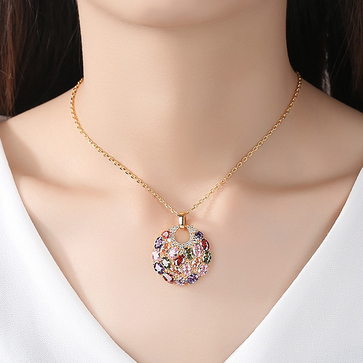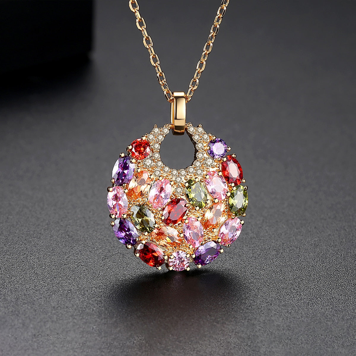 Luxury Multicolor Cubic Zirconia Big Round Necklace Pendant