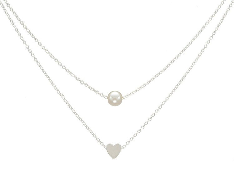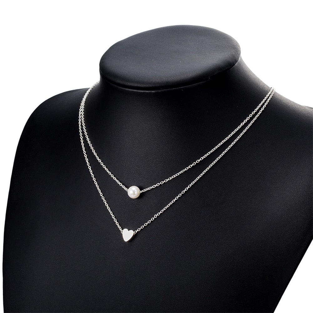 Sweet Double Layers Imitation Pearls Heart-shaped Pendant Necklace