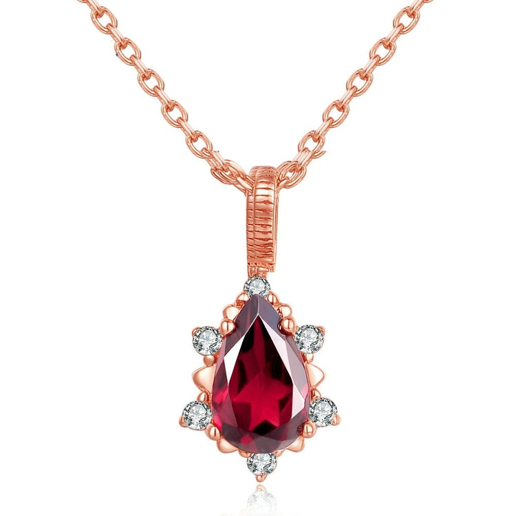 Teardrop Natural Red Garnet Gemstone 925 Sterling Silver Necklace