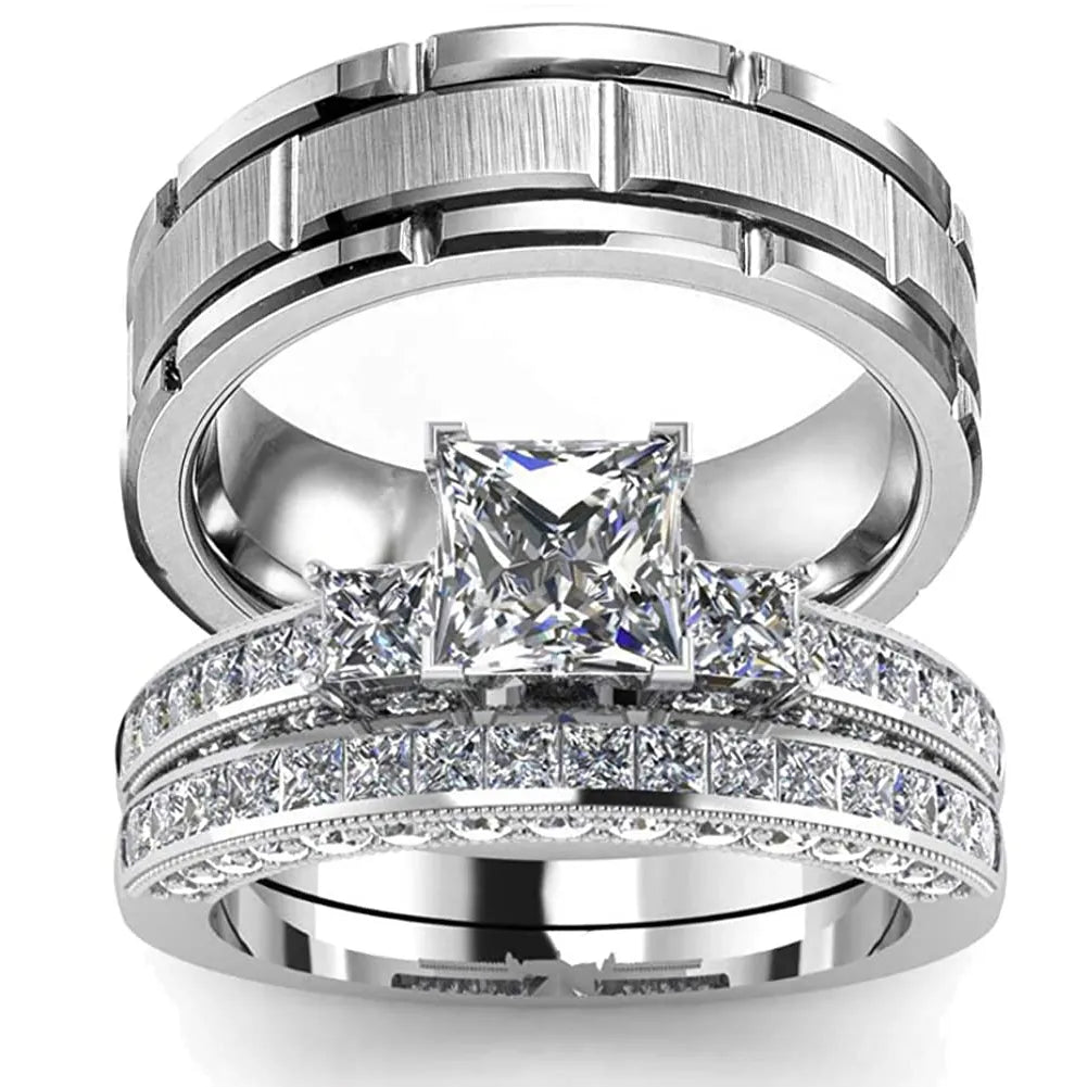 Couple Rings Women Exquisite Rhinestones Zirconia Rings Set Simple Stainless Steel Men Ring Fashion Jewelry For Lover Gifts