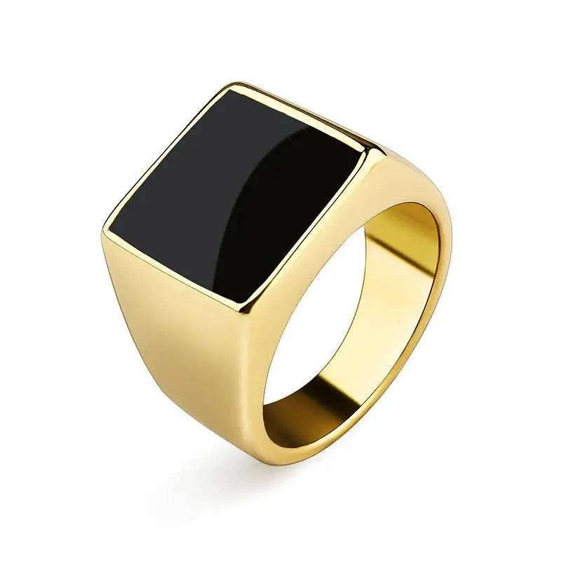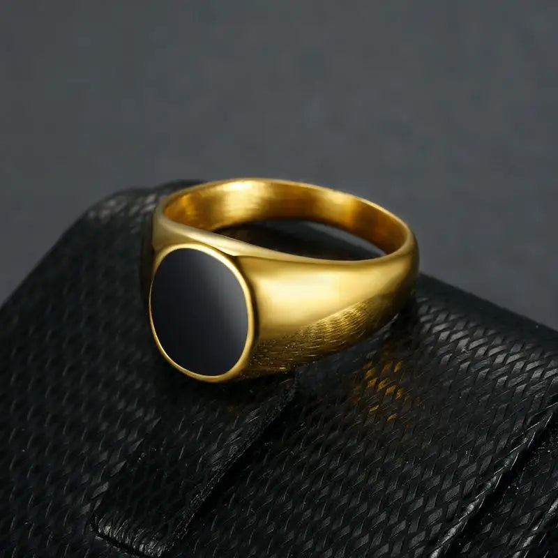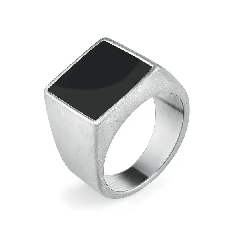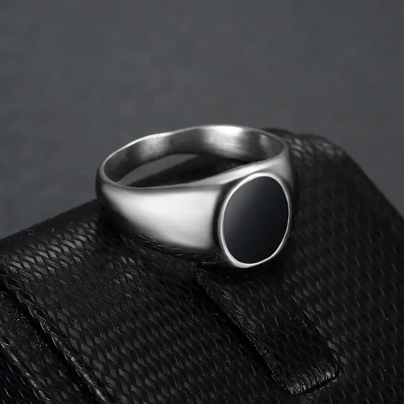 Luxury Style Men's Ring Stainless Steel Black Glossy Flat Ring Punk Rock Smooth Signet Ring For Men Fashion Jewelry Wholesale