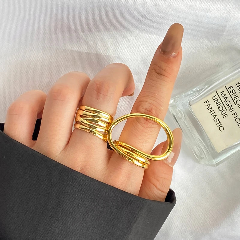 Punk Golden Portrait Coin Chain Geometric Rings Set NEW Fashion Open Rings For Women 2024 Trend Jewelry Gifts