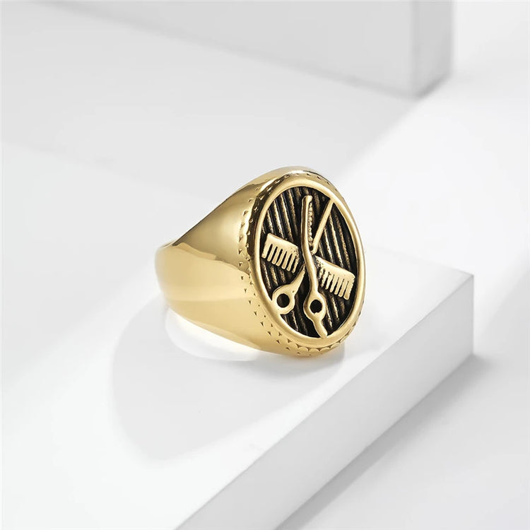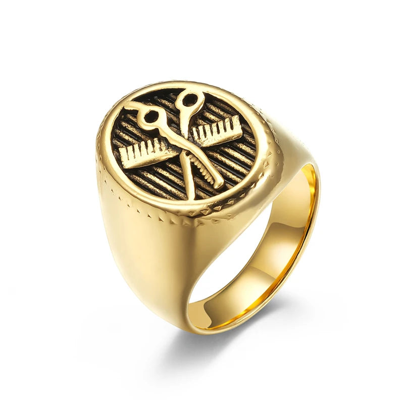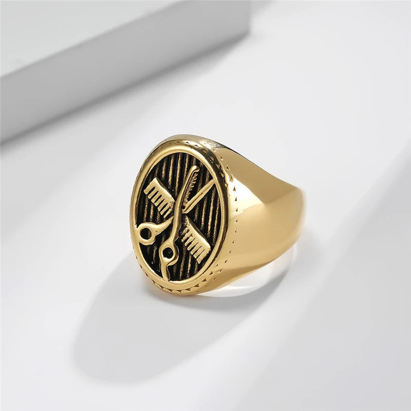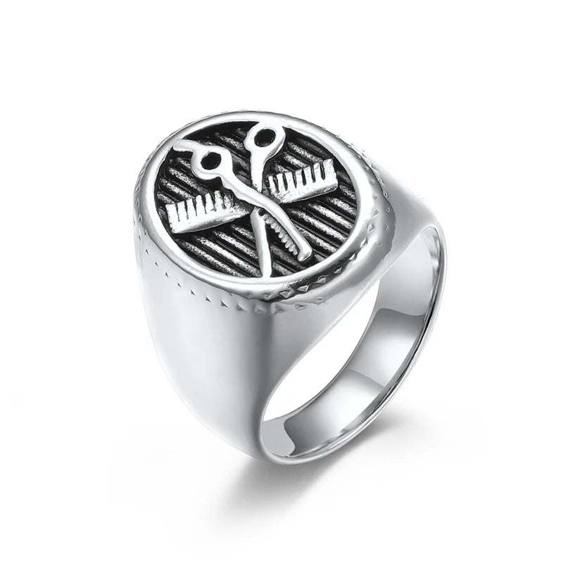 Retro Cute Barbershop Mini Comb Scissors High Quelity Stainless Steel Male Female Ring High Polished No Fading JZ605