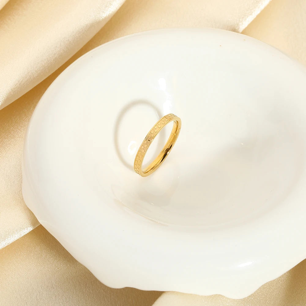 Tarnish Free Jewelry Stainless Steel 18K Gold Plated Grid Bold Stacker Rings For Women Grils Metal Lattice Band Ring 2022