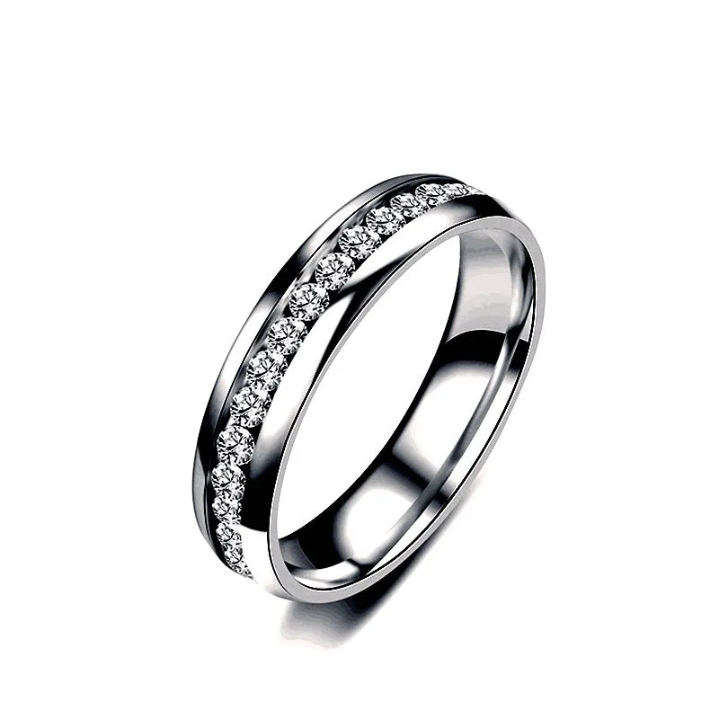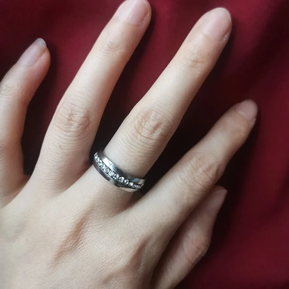 Women Men Luxury Stainless Steel Rings Crystal Rhinestone Wedding Engagement Zircon Ring Fashion Couple Jewelry Size 6-12