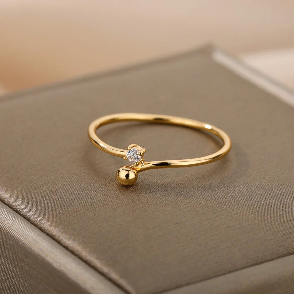 Zircon Open Rings For Women Gold Color Stainless Steel Female Engagement Wedding Ring Jewelry Girlfriend Birthday Gift