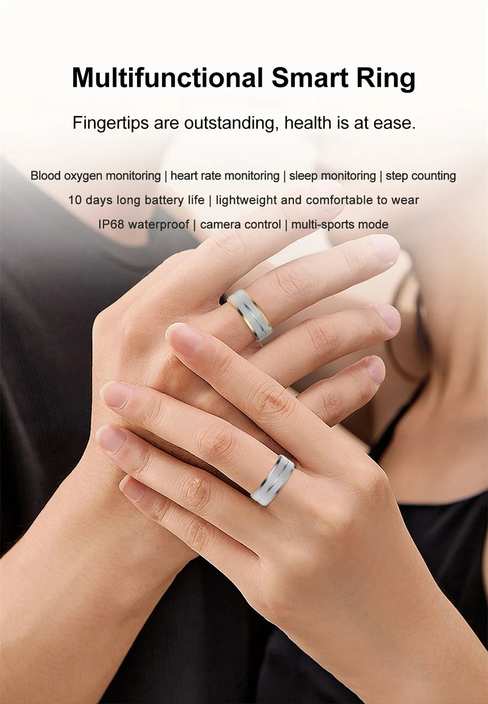 Experience the ultimate combination of minimalist elegance and cutting-edge performance with the Smart Ring Men Women IP68 Waterproof Heart Rate Blood Oxygen Sleep Health Monitor Sport Fitness Health Ring. Its sleek and transparent resin inner diameter design sets it apart from traditional wearables.