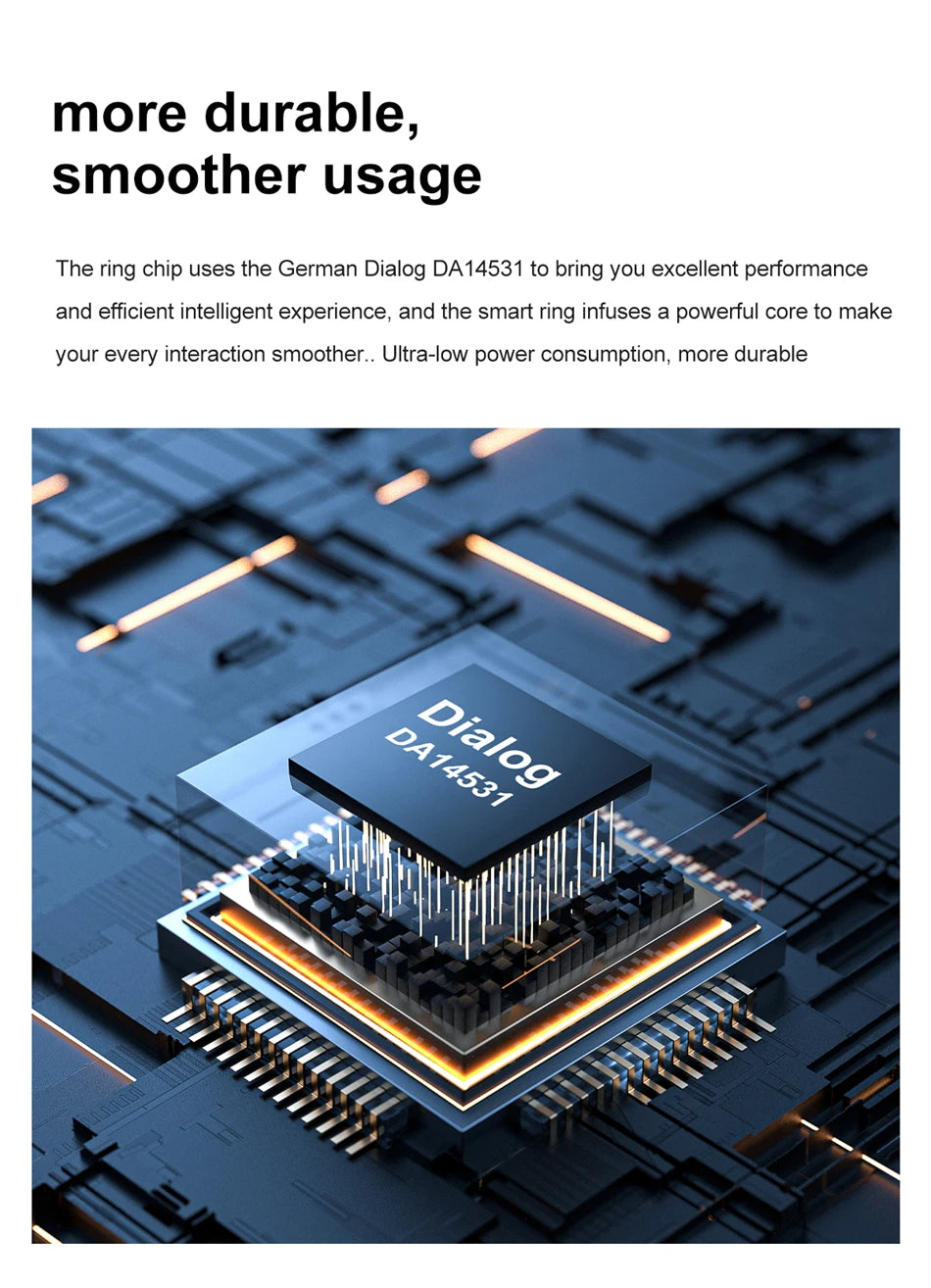 Using advanced technology, this smart ring offers precise data monitoring and intelligent manufacturing. Both stylish and simple, the hardware and appearance exceed expectations. 24/7 heart health monitoring is made possible with the Smart Ring's professional heart health consultant.