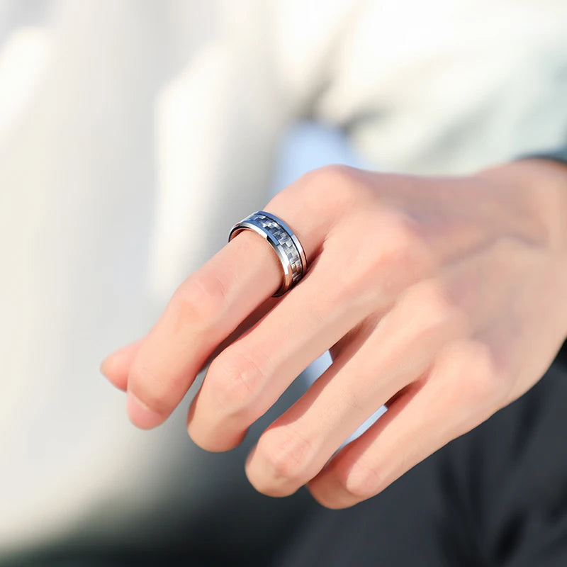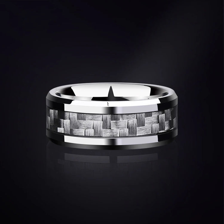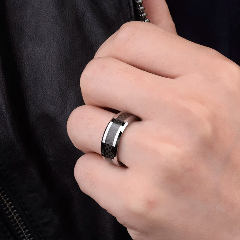 8mm Width Tungsten Engagement Rings with Name for Men High Polished Inlay Black/White Carbon Fiber Size 6-14 Free Engraving