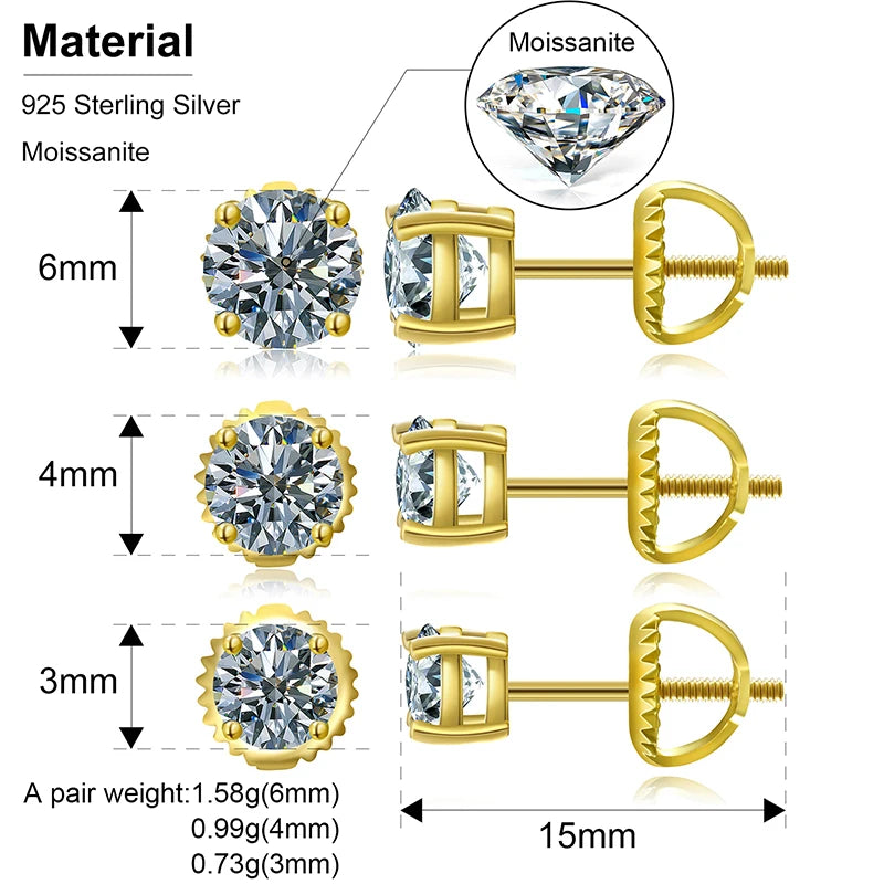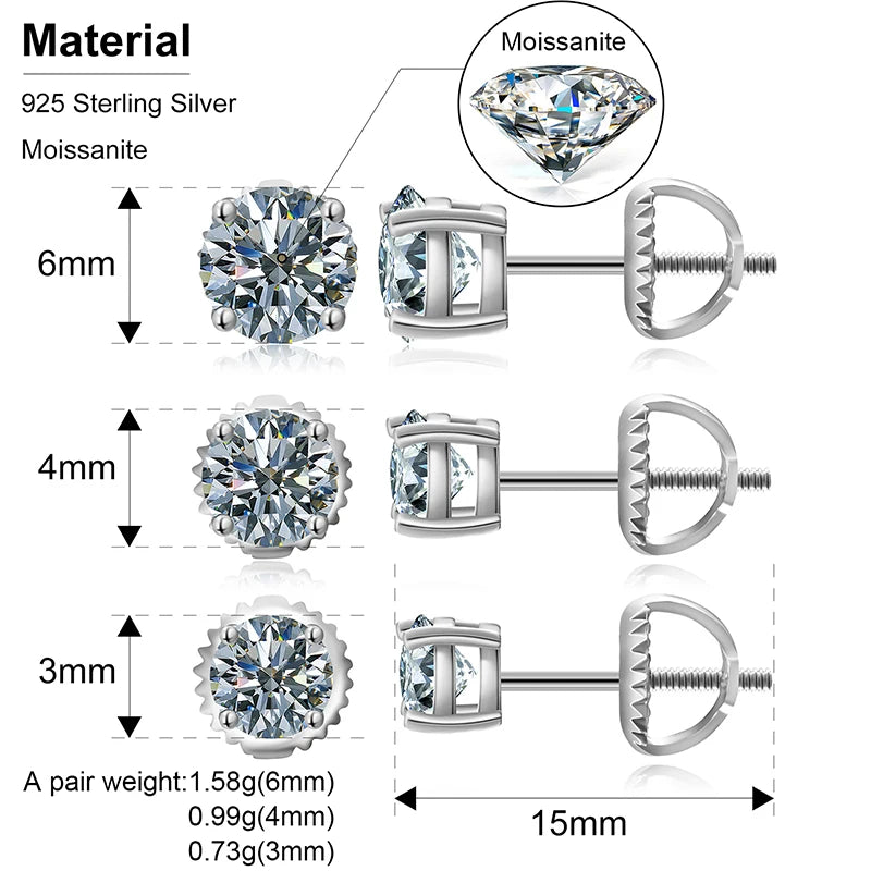 Classic Round Moissanite Earring Top Quality 100% 925 Sterling Silver For Women Men's Jewelry Fashion Earrings Engagement