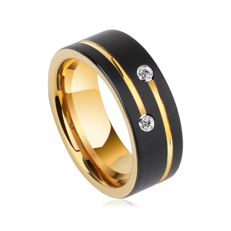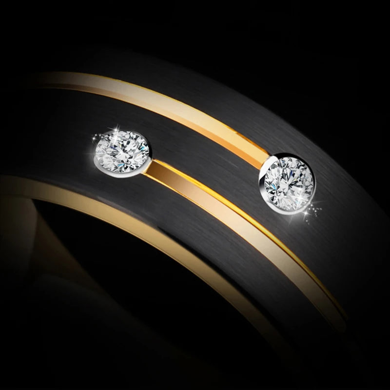 Luxury Mens 8mm Black Stainless Steel Gold Color Ring Crystal Wedding Band for Men's Engagement Party Jewelry Gift