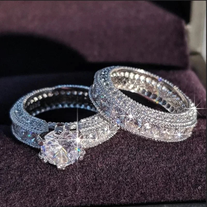 This classic bridal set of rings, designed for women, features a stunning pave setting crafted from cubic zirconia. The rings, made from copper and zinc alloy, offer both elegance and durability, making them ideal for parties and special occasions.