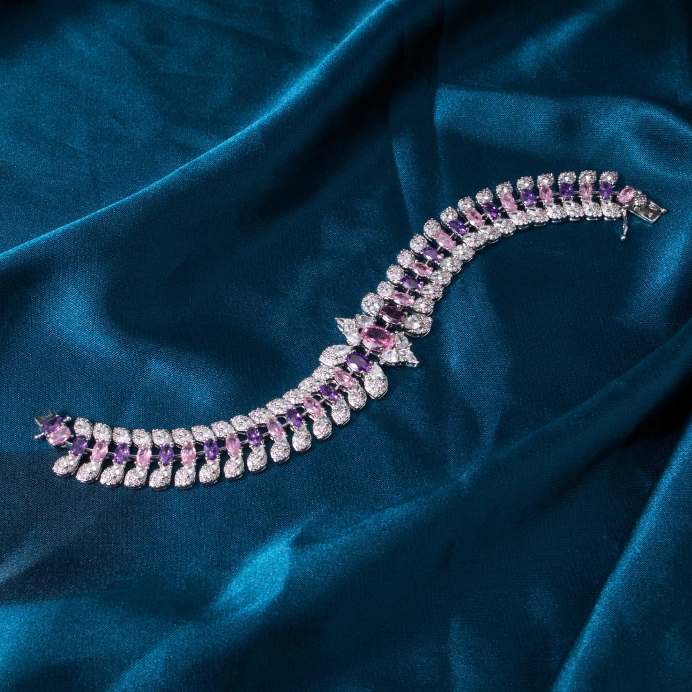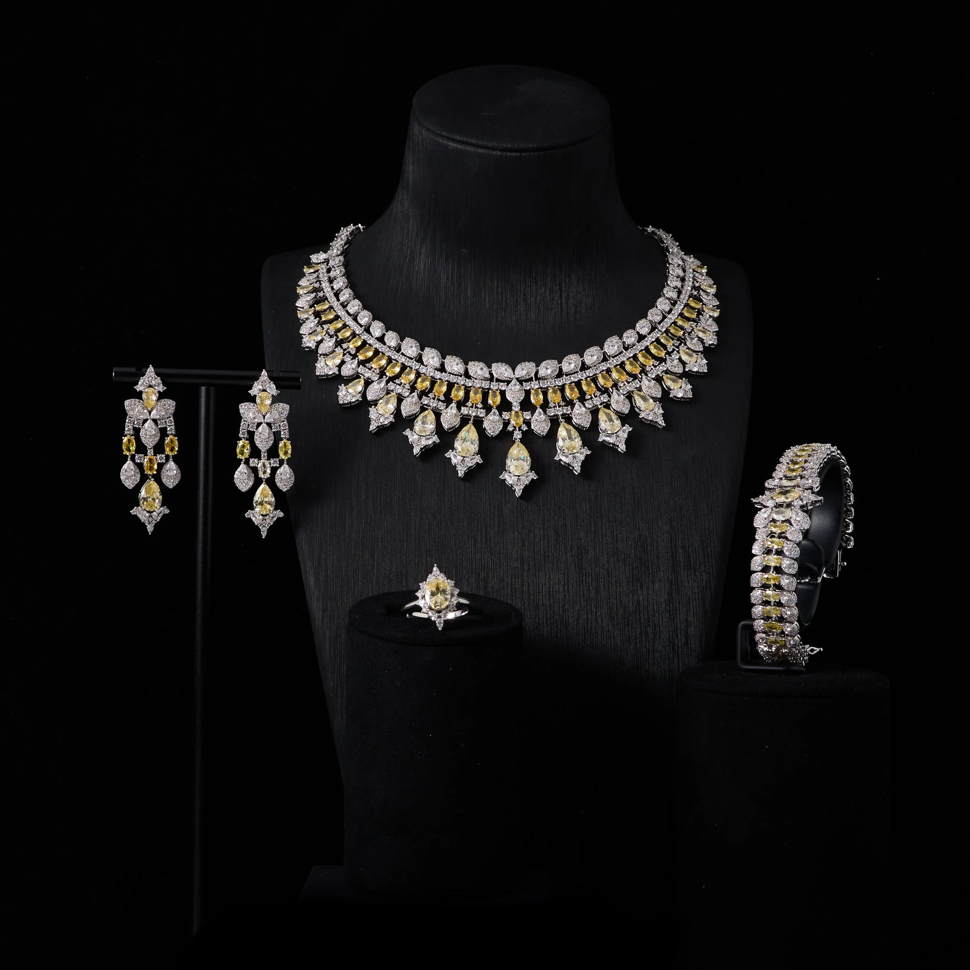 Elevate your bridal look with this luxurious 4-piece jewelry set, featuring a plant-inspired design adorned with sparkling cubic zirconia. Including a necklace, earrings, bracelet, and ring, this classic set is perfect for weddings and special occasions, offering timeless elegance with a touch of luxury.