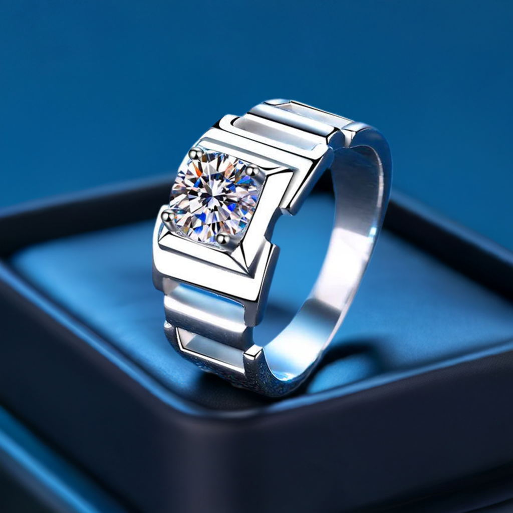 1 Carat Moissanite Ring For Men 14K White Gold Plated Sterling Silver Rings Round Diamond Engagement Wedding Ring Include Box