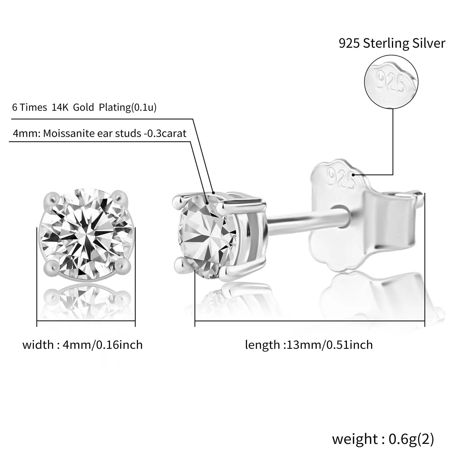 2021 New Top Luxury 3/4/5MM 0.5 Carat D Color Moissanite Earrings 925 Sterling Silver Jewelry For Women Gift GRA Certificate