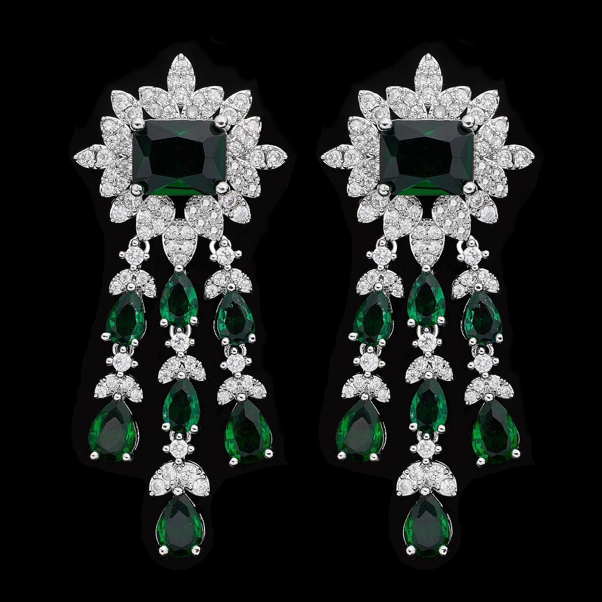 This exquisite bridal jewelry set includes a necklace, bracelet, earrings, and a ring, all designed with high-quality cubic zirconia diamonds. The set is plated in 24K gold or white gold, offering a luxurious and timeless look perfect for weddings, anniversaries, engagements, or parties. The geometric design enhances the overall elegance, making it an ideal choice for a bride who seeks both style and sophistication.