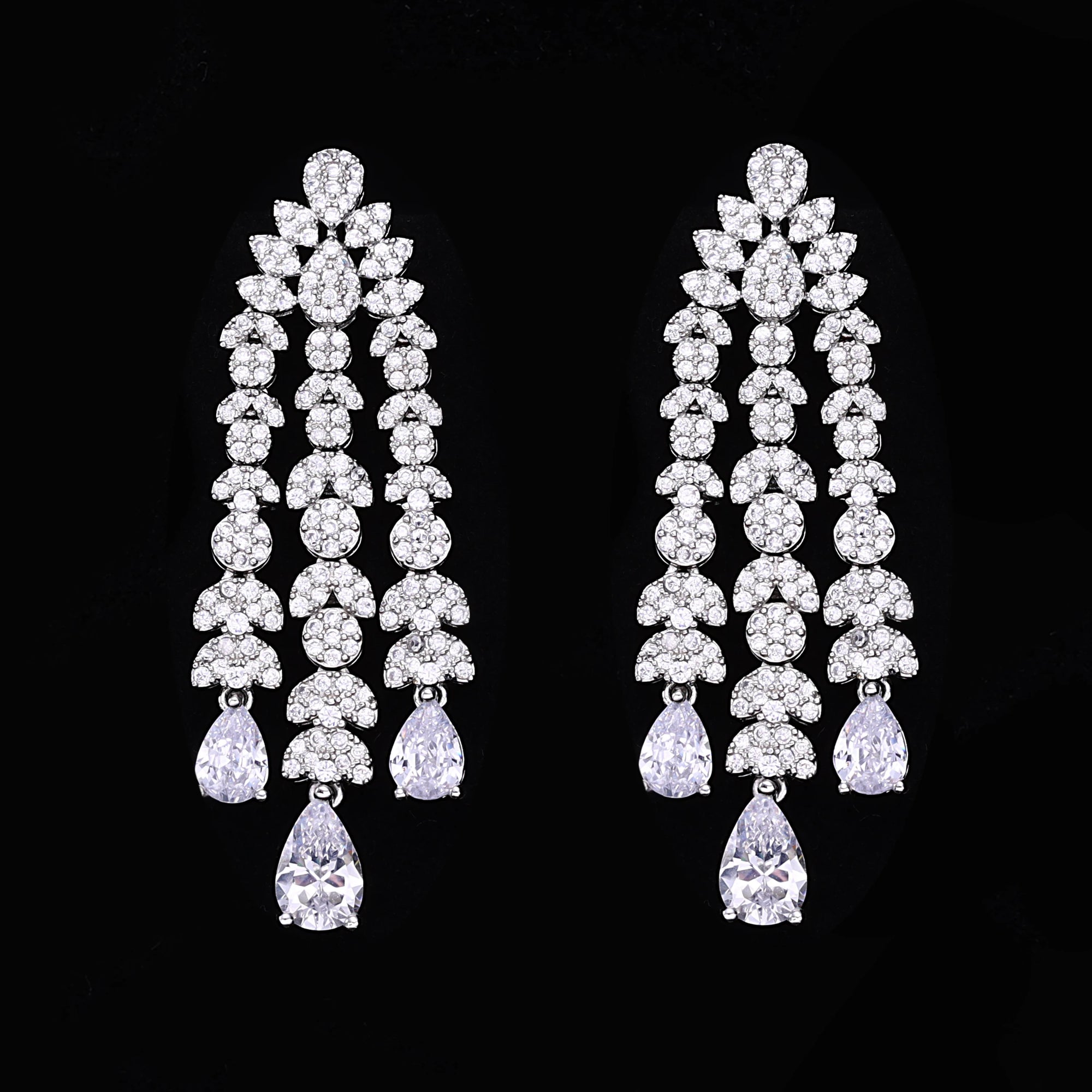 This high-quality 4-piece bridal jewelry set features expertly inlaid AAA cubic zirconia, crafted by artisans with over 15 years of experience. With a sleek geometric design and trendy finish, this set is perfect for weddings and elegant occasions, offering both brilliance and timeless charm.