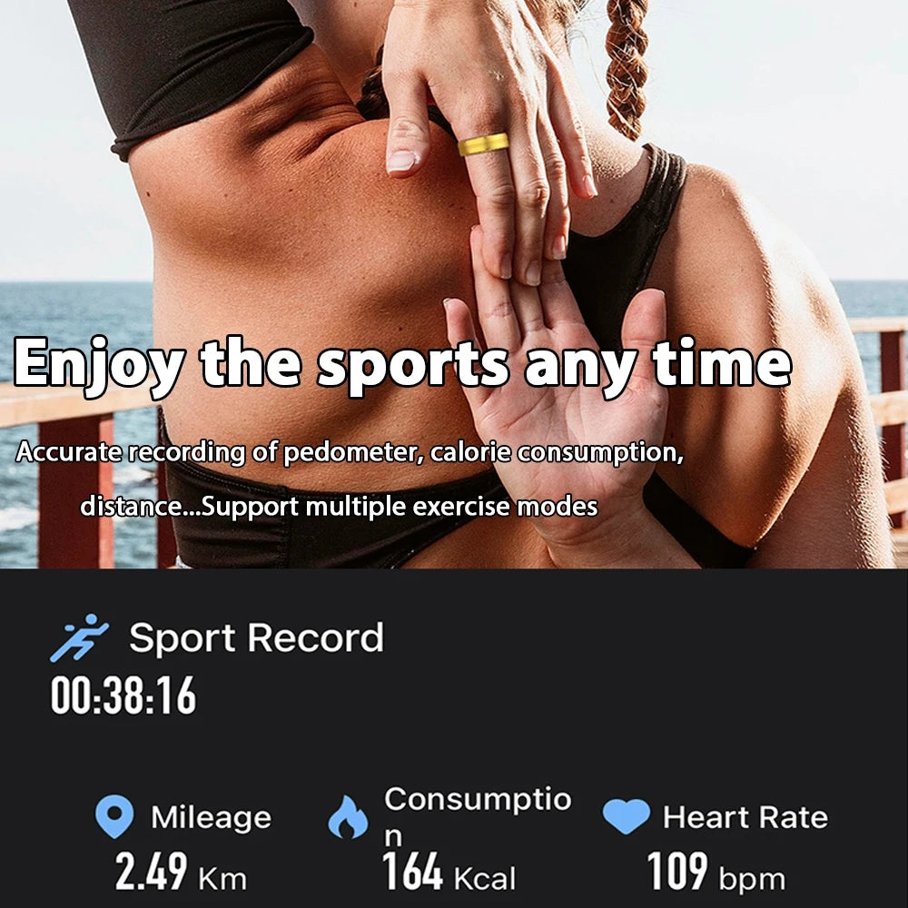 The 2024 New Smart Ring combines military-grade titanium steel with 5ATM waterproofing to deliver robust health monitoring and multi-sport tracking. This smart ring is designed for both men and women, measuring heart rate, blood pressure, sleep, blood oxygen, and stress. It offers a durable build and comprehensive tracking features for an active lifestyle.