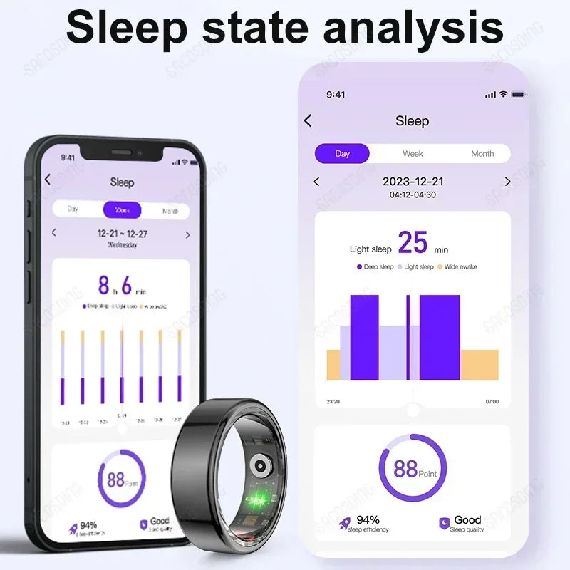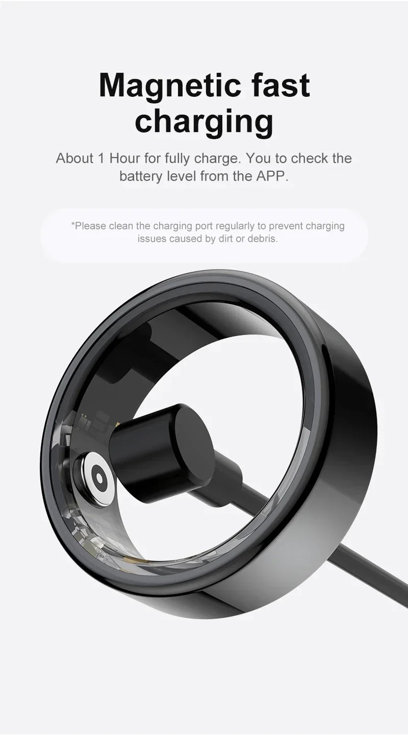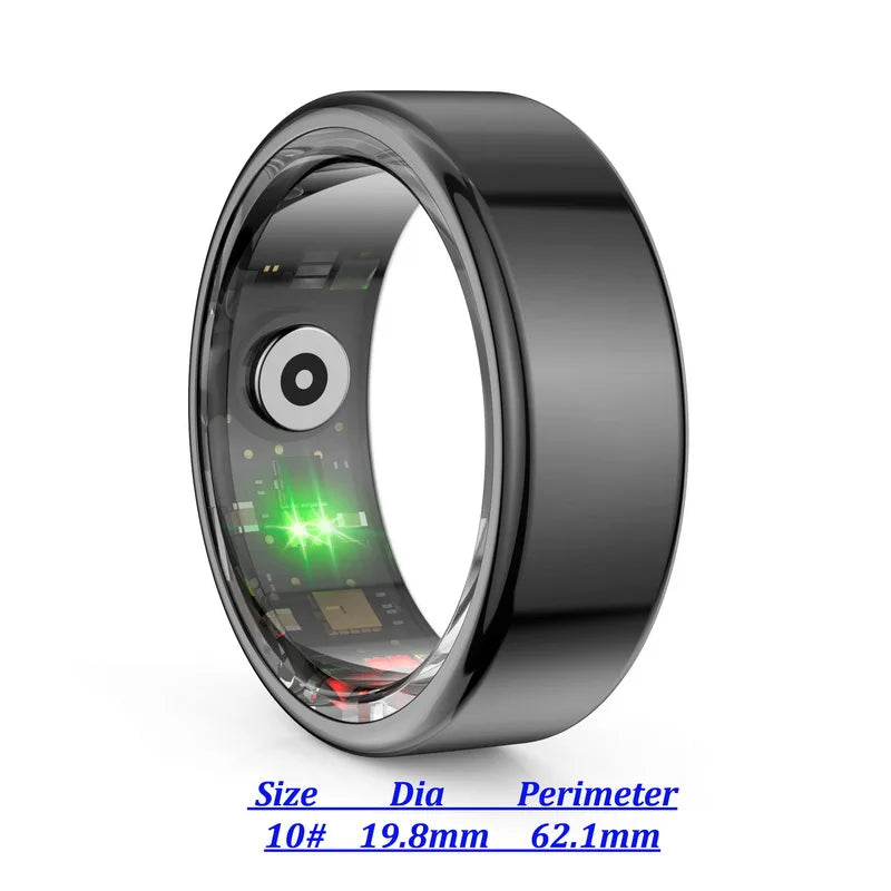 The R02 Smart Ring offers robust health and fitness tracking with advanced features and a durable titanium steel shell. It supports multiple sports modes, has a 5ATM waterproof rating, and features a long battery life. Ideal for those who need reliable monitoring for various physical activities and health metrics.
