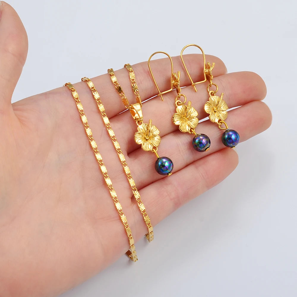 Hawaiian Flower Jewelry sets Hawaiian Pendant Necklaces Earrings Guam Micronesia Chuuk Party & Wedding @262306