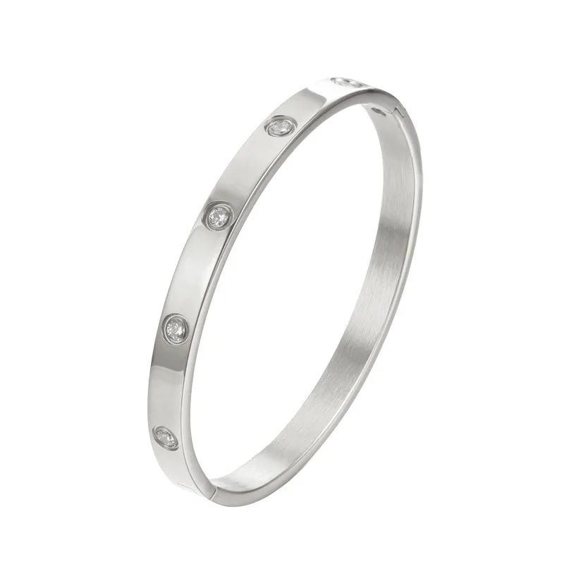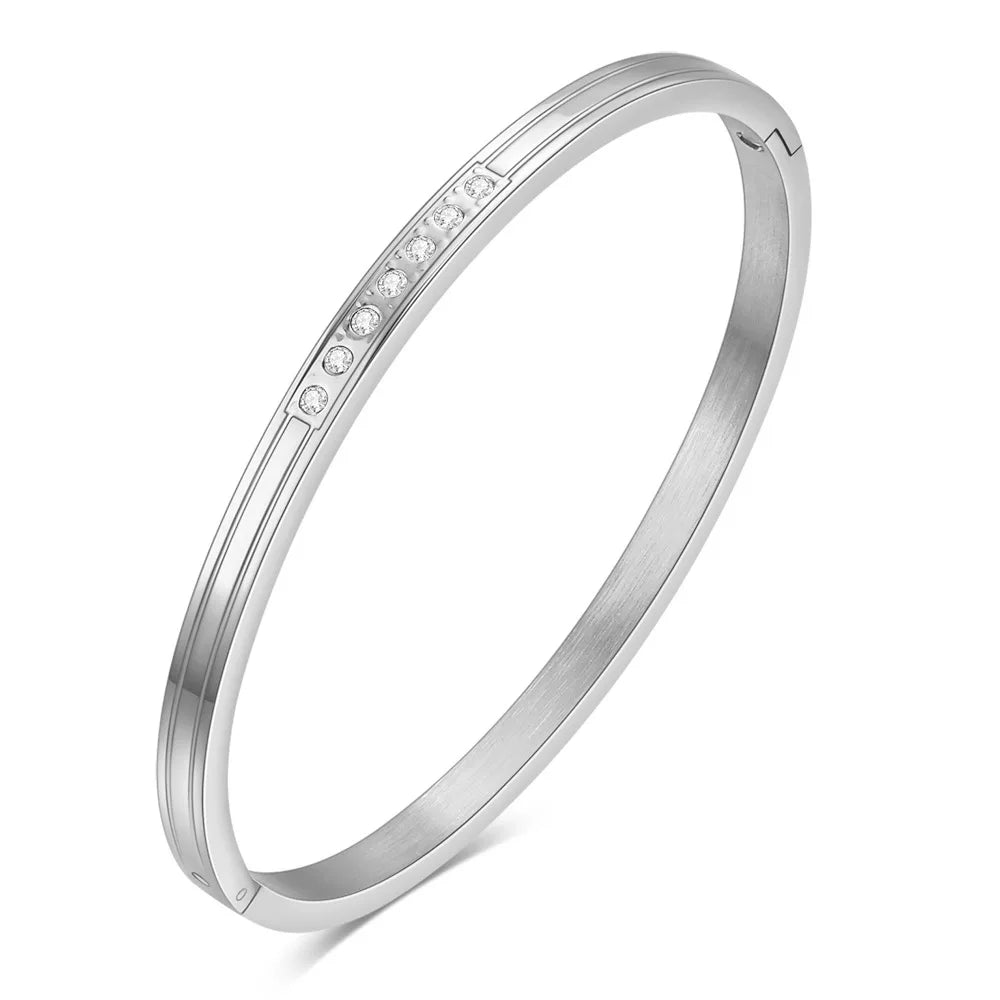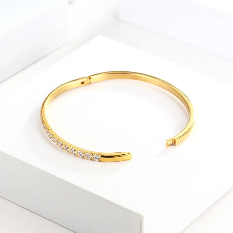 Add a touch of celestial charm to your jewelry collection with this trendy star-patterned bangle. Made from high-quality stainless steel and plated in a radiant gold color, this bangle is designed for women who love to shine. Its sleek design and star motif make it a perfect accessory for both casual and formal outfits, ensuring you stand out on any occasion.