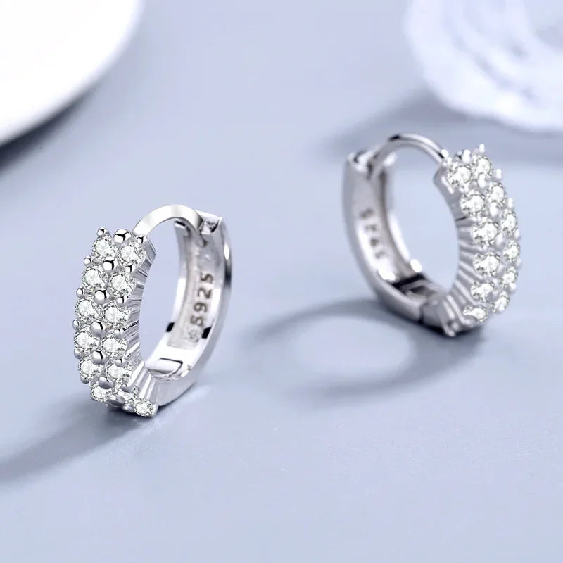 Fine 925 Sterling silver original Double row crystal Round Earrings Stud for women Fashion Jewelry Engagement Party Gifts