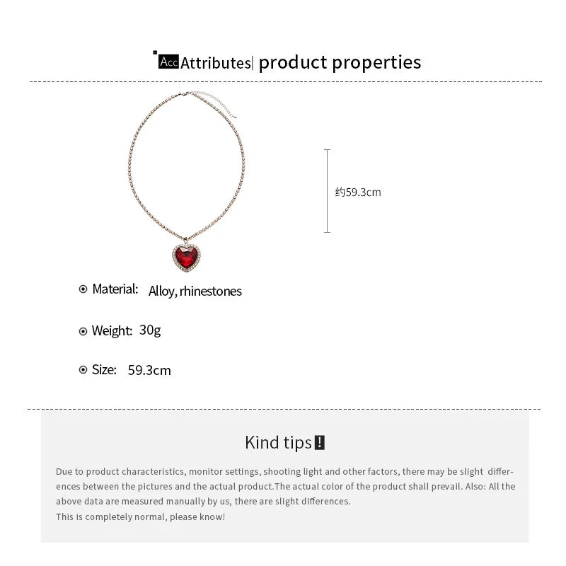 Heart of Ocean Necklace Big Blue Red Heart Pendant Necklace for Women Shiny Rhinestone Chain Necklace Party Wedding Jewelry
