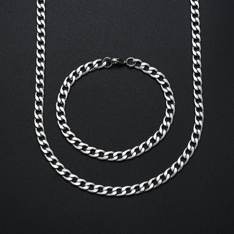 Hot sale width 6MM stainless steel Cuban chain necklace & bracelet fashion jewelry set hip hop rock jewelry for men