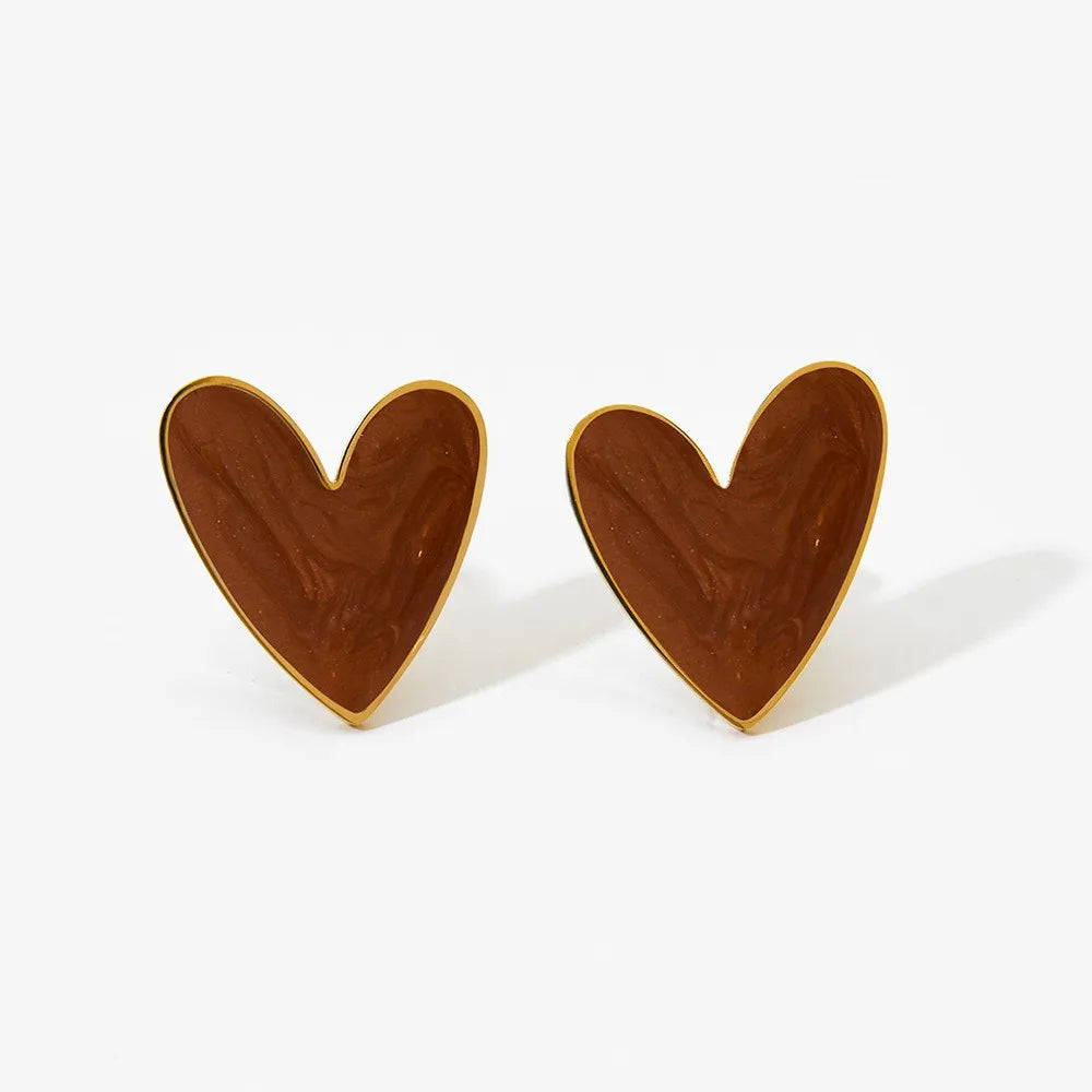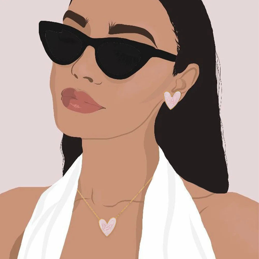 18K Gold PVD Plated Stainless Steel Colorful Enamel Heart Necklace Earring Set For Women Spring Summer Jewelry Waterproof