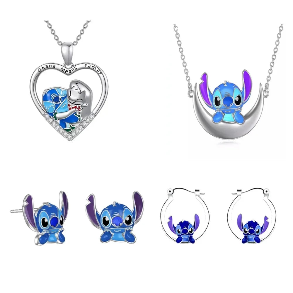 Lilo & Stitch Disney Cute Necklaces Earrings for Girls Women Anime Jewelry Accessor Pendant Stud Earring Kids Birthday Xmas Gift